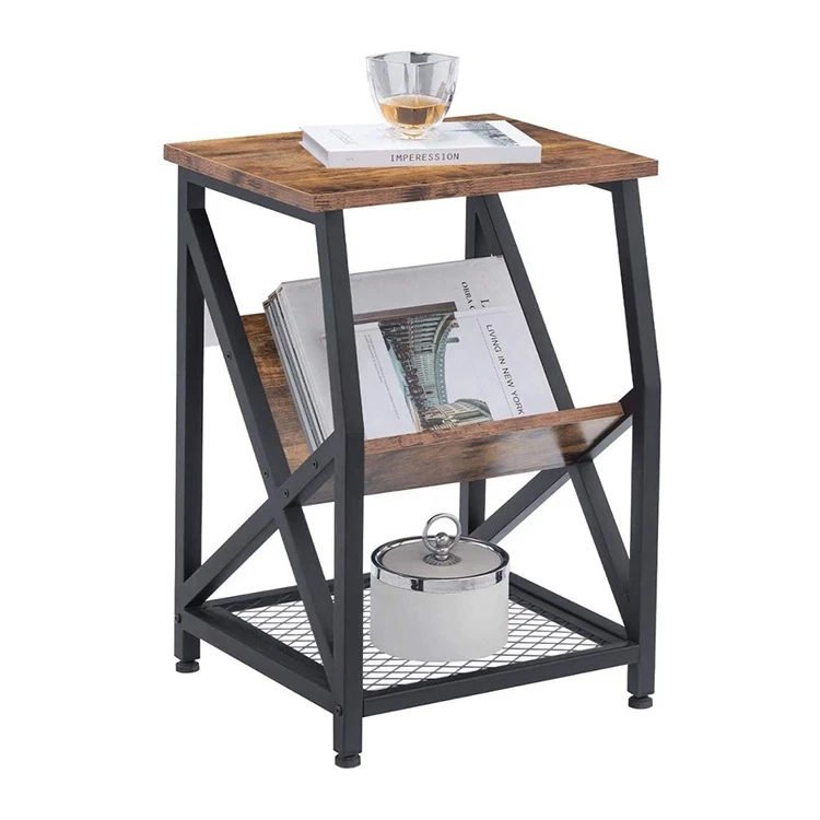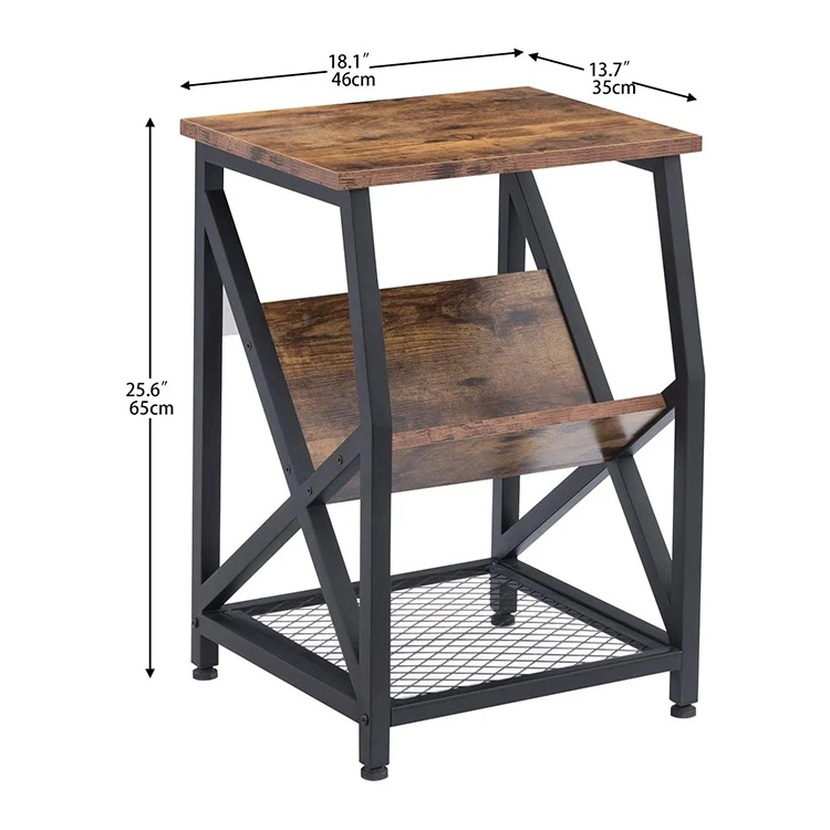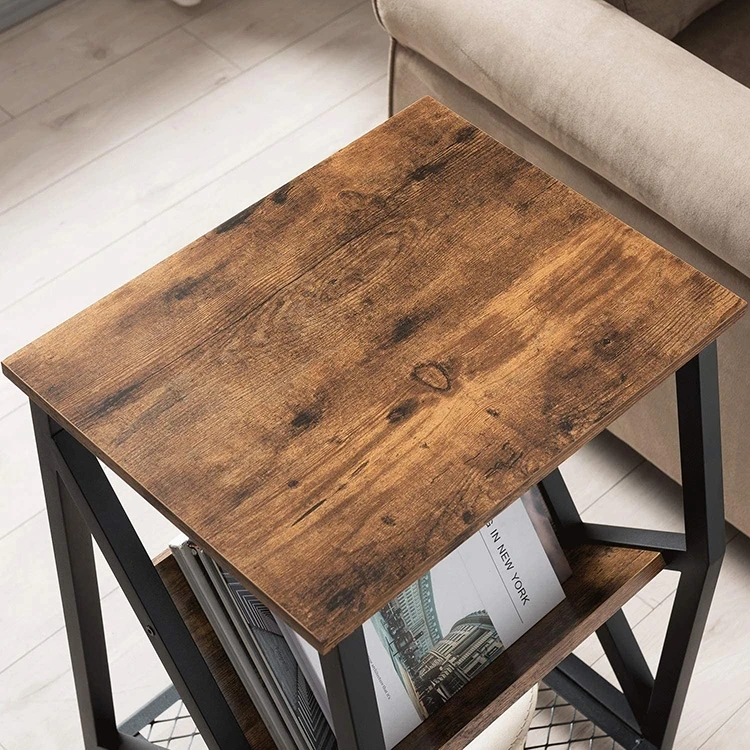 Living Room Nightstand Rustic End Wooden Coffee Side Table Shelf With 3-tier Storage
