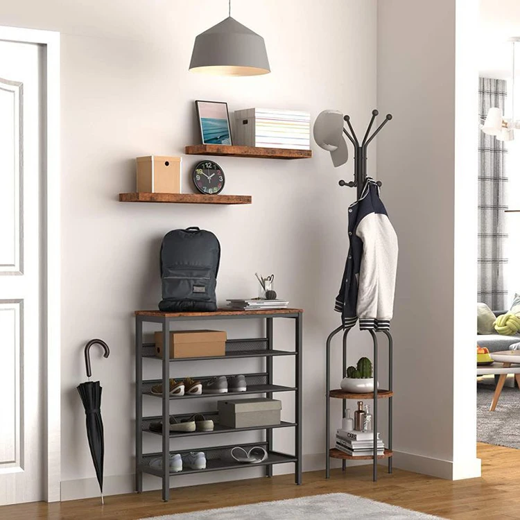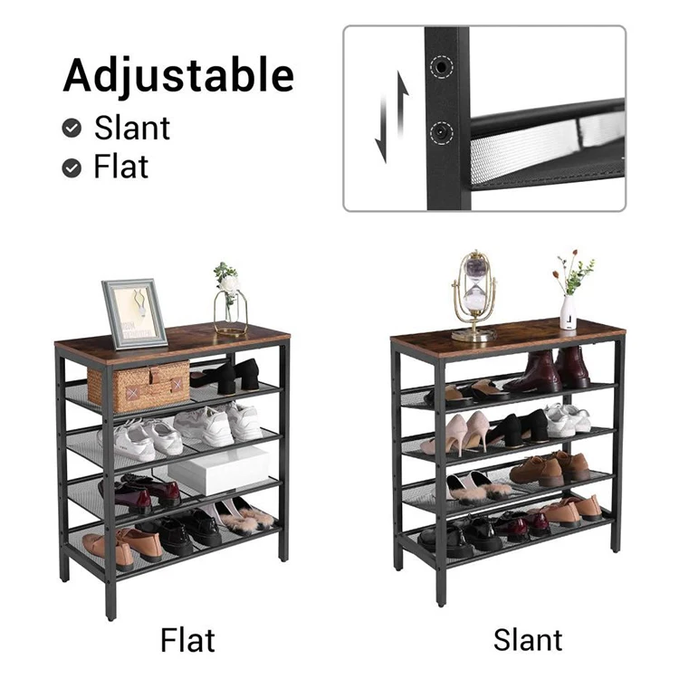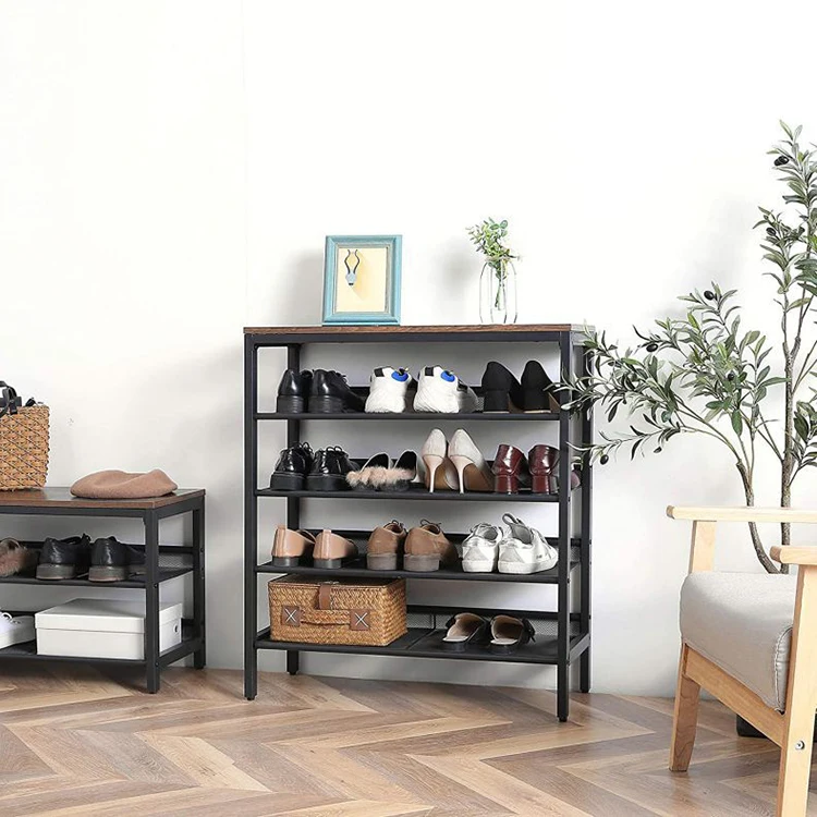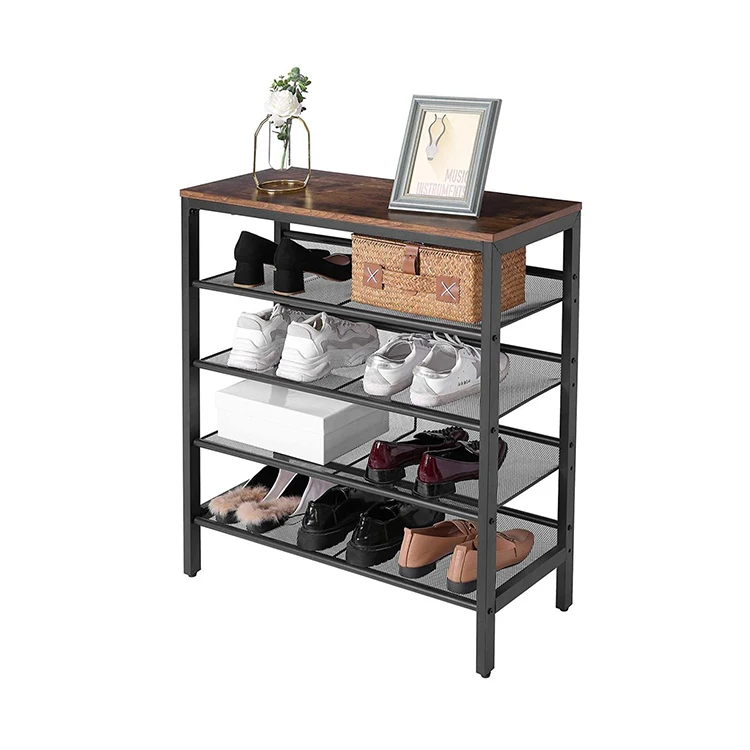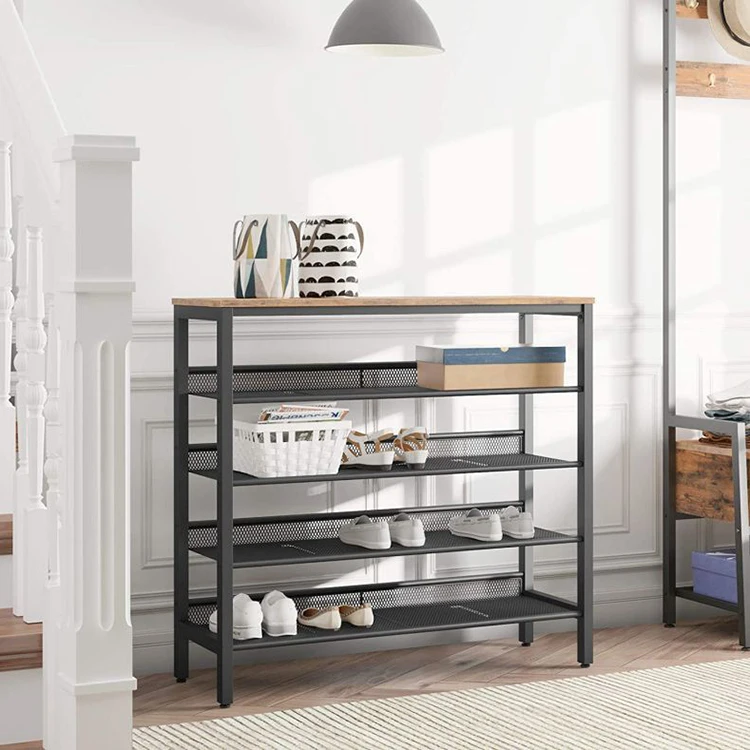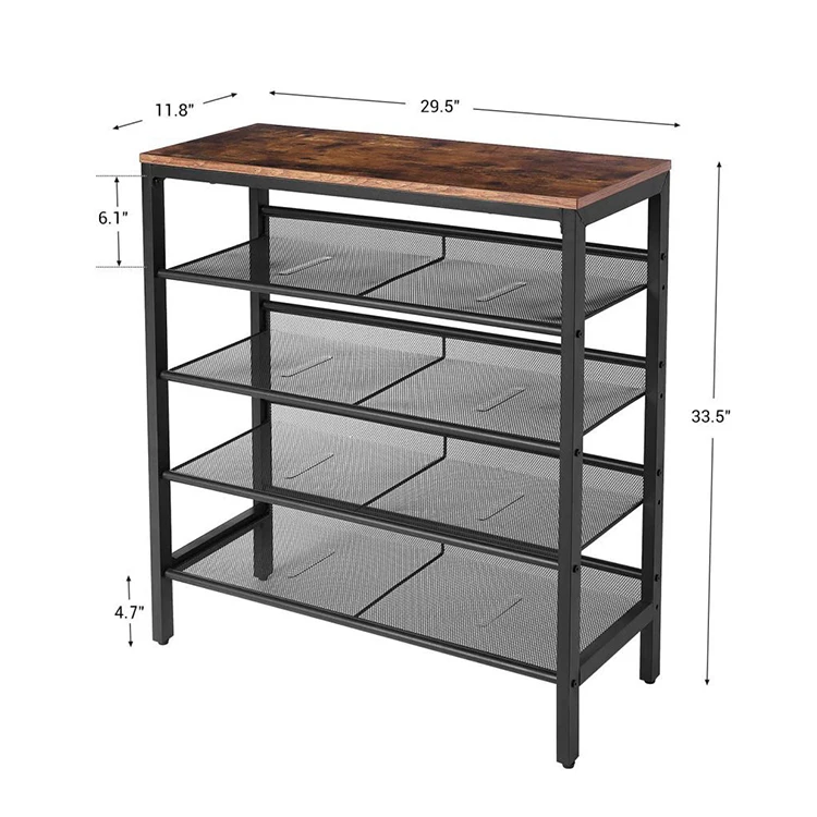 Modern Entry One Piece 4 Tier Storage Metal Iron Shoes Rack, Show Iron Wooden Shoes Shelf