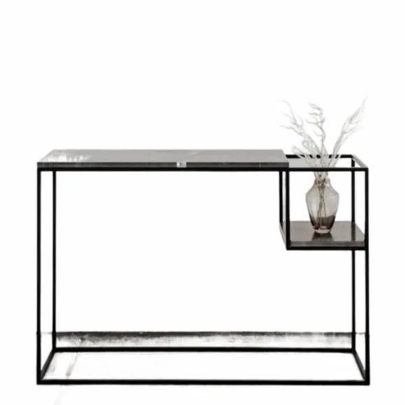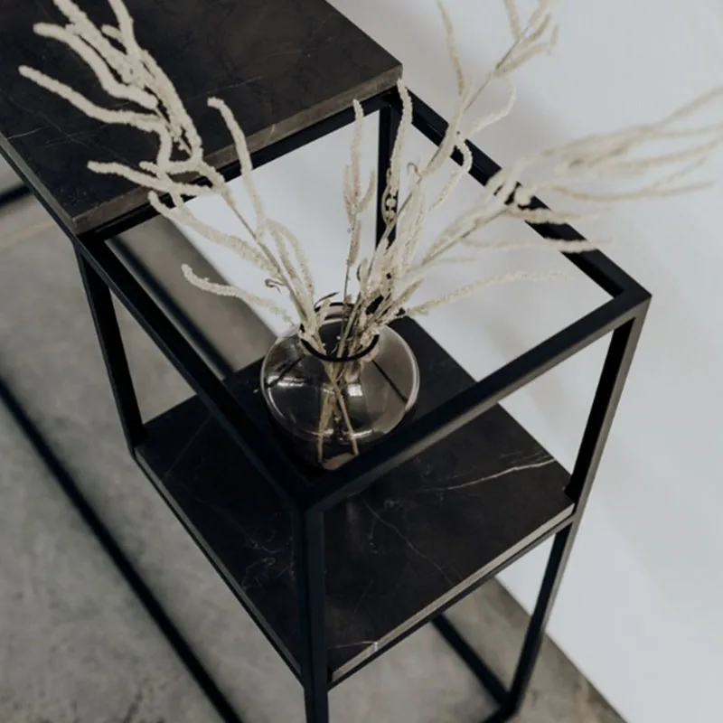 Nordic Modern Rectangle Iron Console Table With Natural Marble Top Space Saving Design