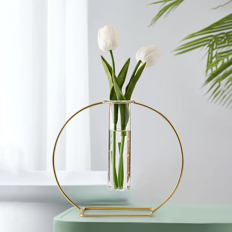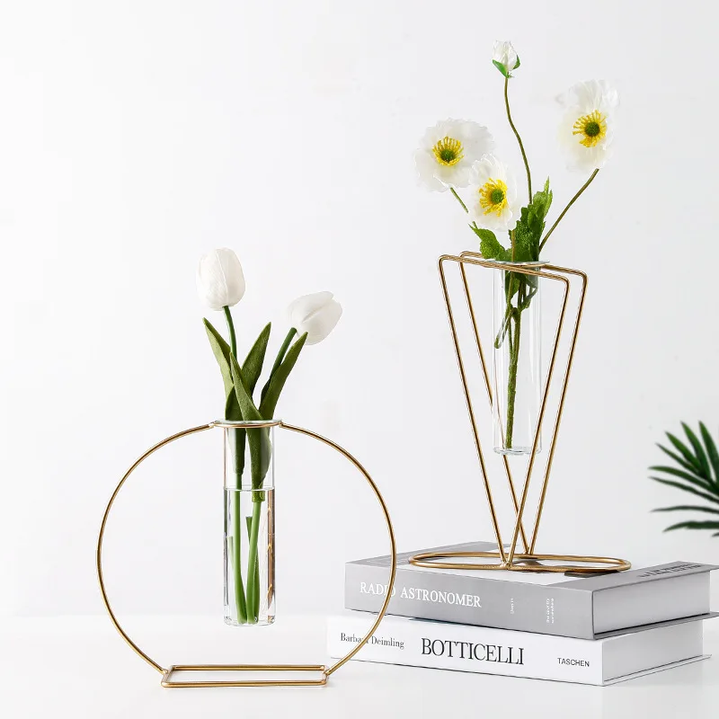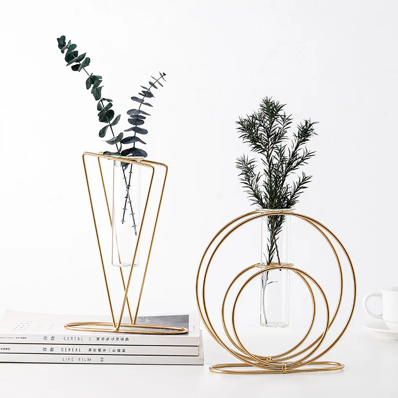 Simplicity Geometry Wrought Iron Metal Framed Transparent Glass Hydroponics Vase For Wedding Home Decoration
