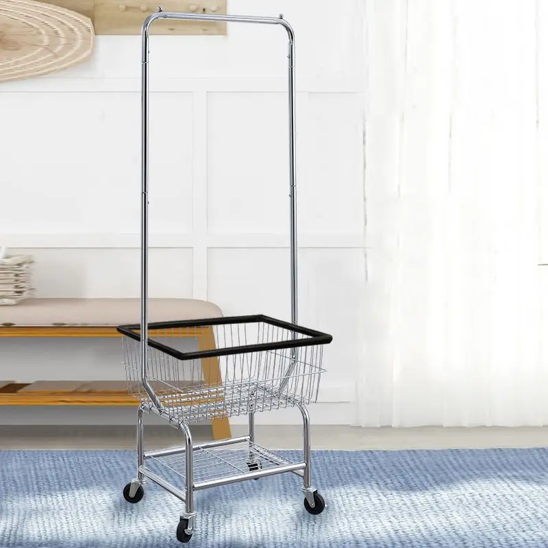 White laundry basket control vehicle commercial laundry vehicle with hanging rack and rolling wheels