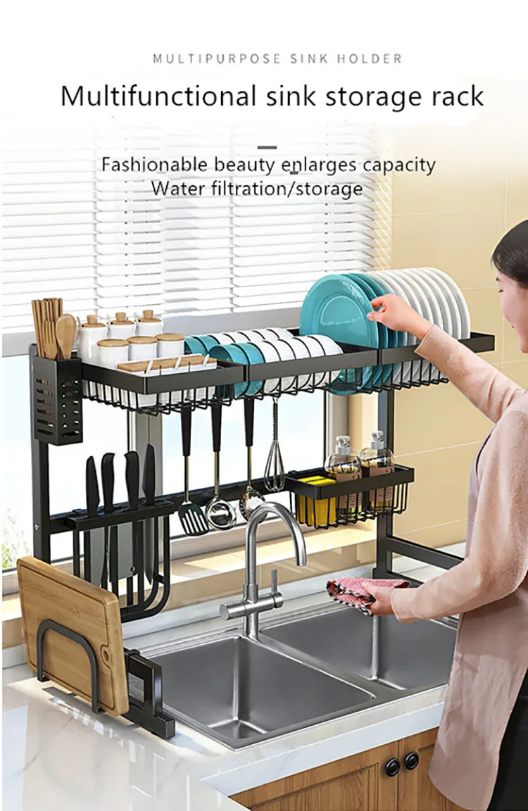2 Tier Kitchen Utensil Organizer Sink Drying Dish Rack