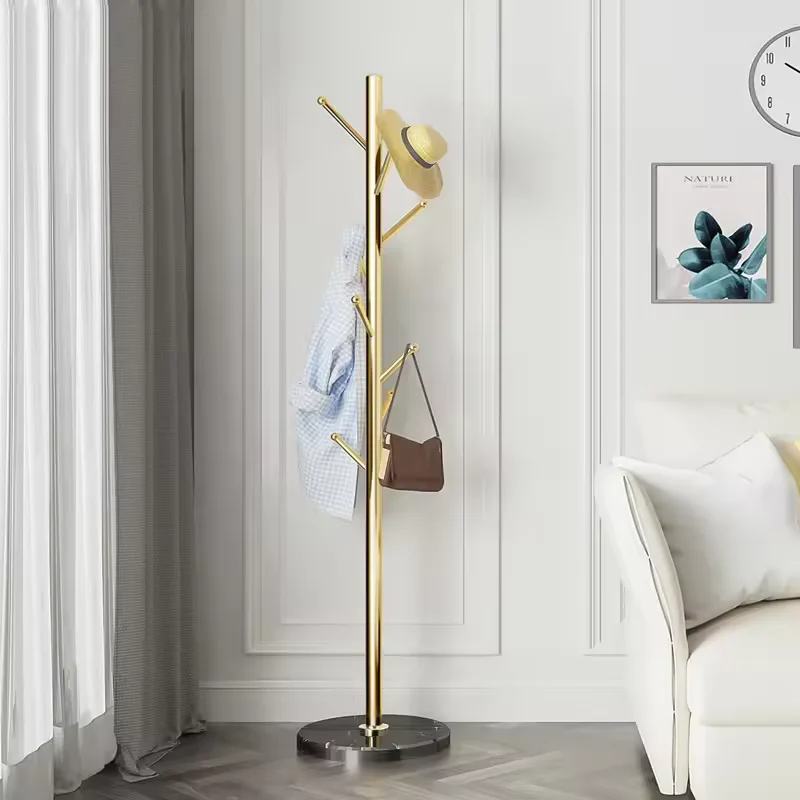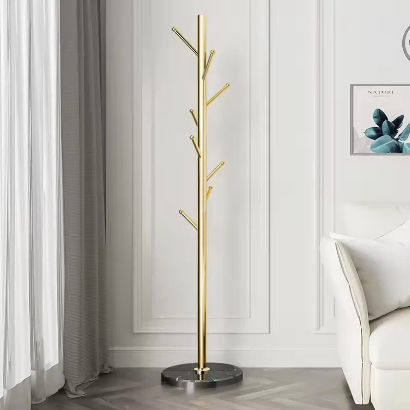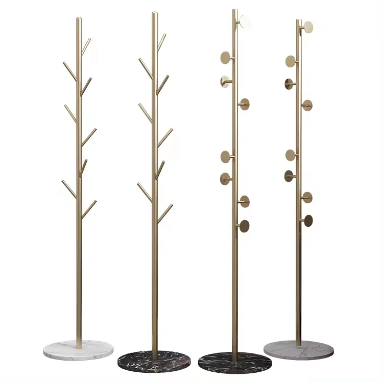 tree hanging clothing bags hatsjackets umbrellas hangers and metal hangers at the corner entrance of the white and black lobby