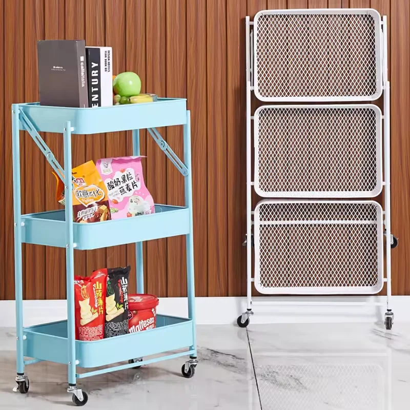 Factory wholesale cheap multifunctional kitchen organizer foldable mobile metal storage cart