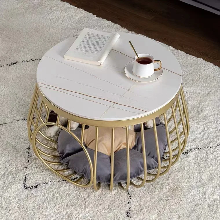 Newest Golden Modern Living Room Office Simple Style Iron Commercial Marble Top Tea Center Coffee Table