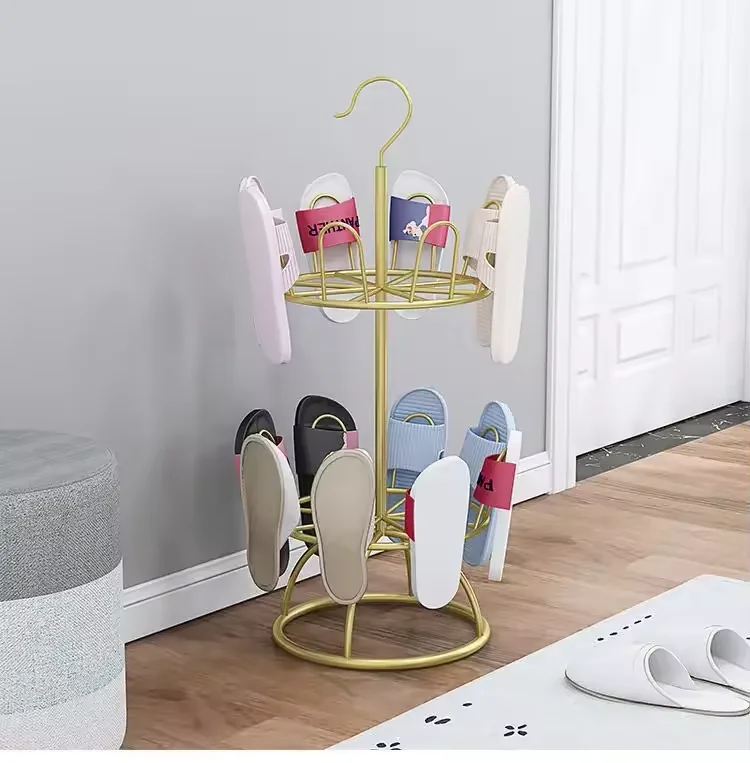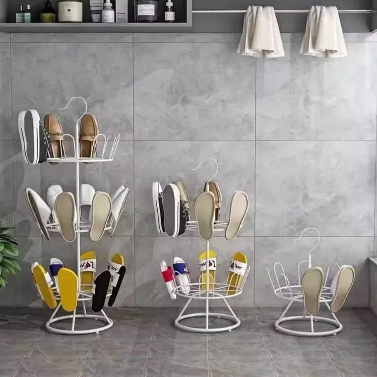 Customized store home slippers casual shoes storage rack women's leather high heels metal rotating display rack