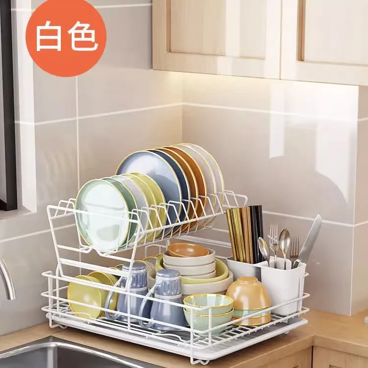 Large metal kitchen countertop tableware clothes rack sink tray and drain rack with plastic tableware tray