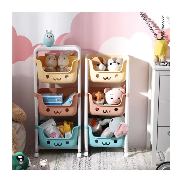 Environmentally friendly plastic PP multi-layer household kitchen shelf storage rack sorting cart toy storage 3-layer partition