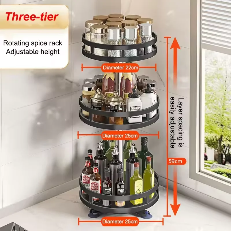 Hogar Kitchen rotating seasoning storage rack without drilling seasoning oil and salt sauce storage rack