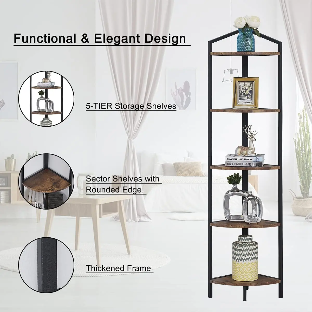 Metal Plant Stand Furniture 5 Industrial Corner Bookcase Display Corner Storage Rack BookShelf