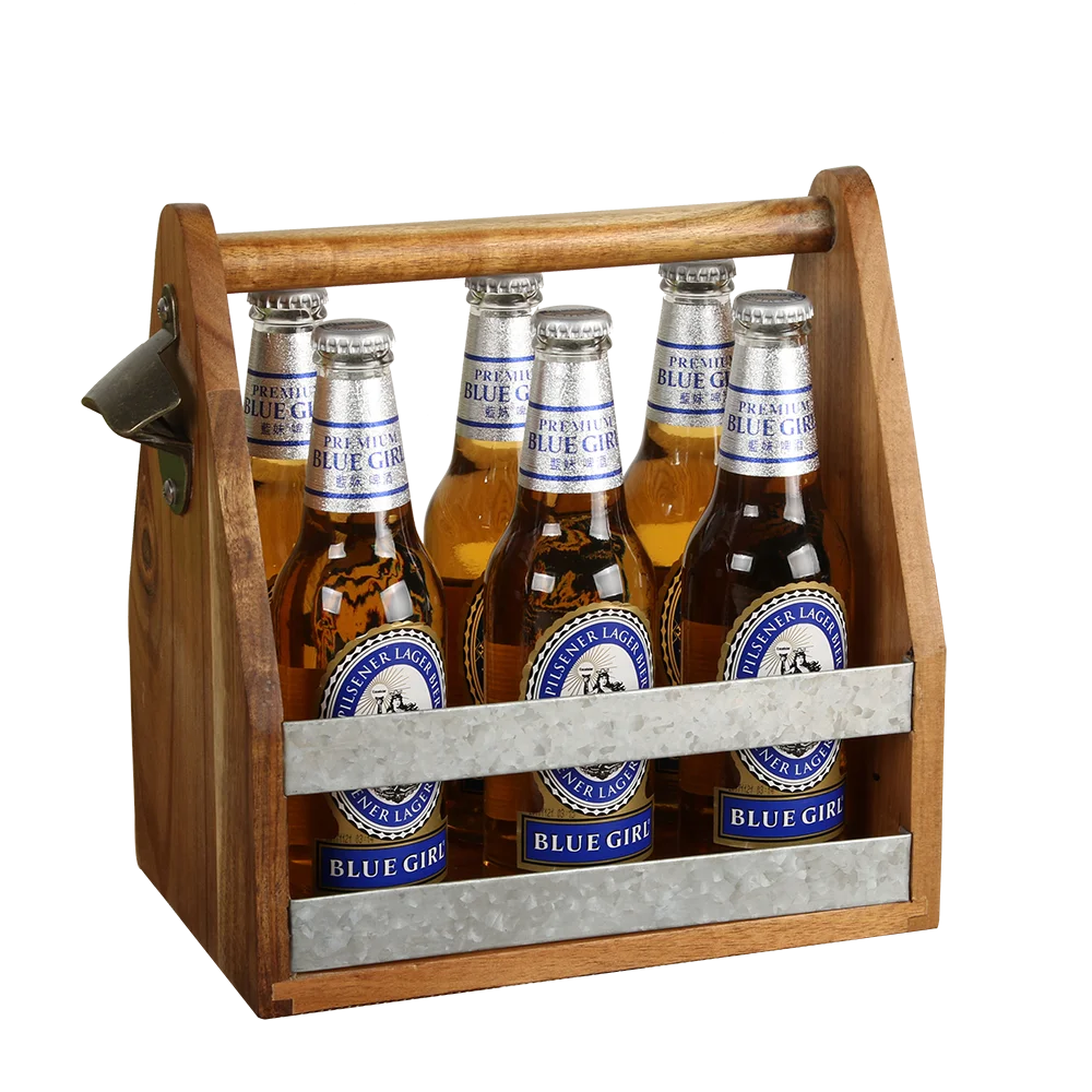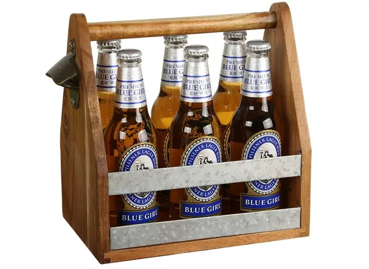 Wholesale 6 Pack Industrial Style Wooden Custom Beer Bottle Holder