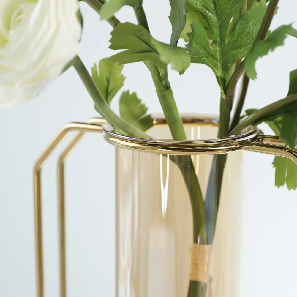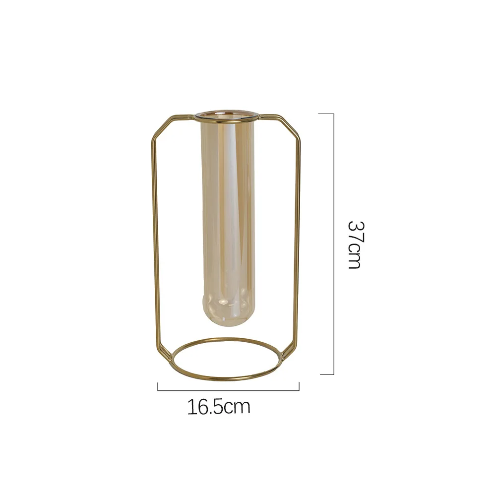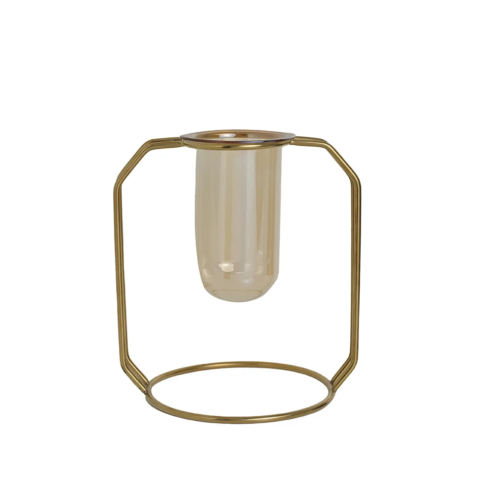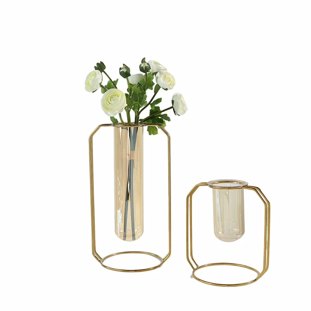 Home Mini Office Decor Desktop Glass Hydroponic Metal Houses Decoration Mental Art Plant Stand Flower Tube Vase