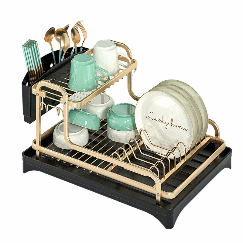 Multifunctional Plate Dish Rack Dry Stand 2 Tiers Kitchen Dish Rack Dish Drying Rack With Drainboard