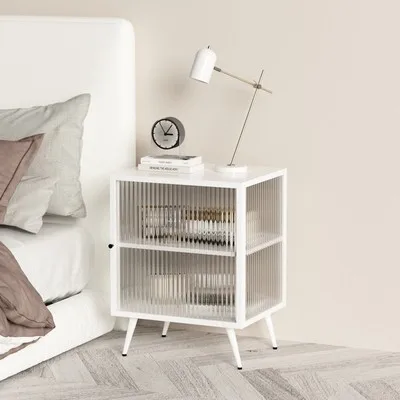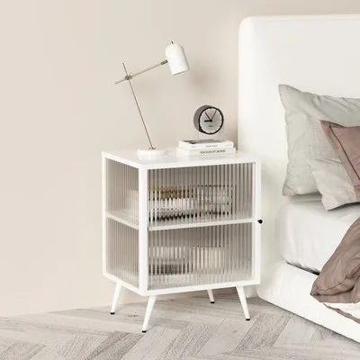 Modern Minimalist Tempered Glass Bedside Table Light Luxury Simple Locker Bedroom Bedside Cabinet Black White Bedside Cabinet