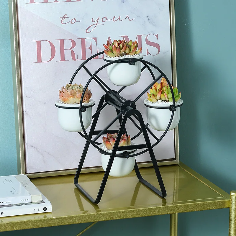 4pcs Ceramic Flower Pot Home Decorative Top Seller Ferris Wheel White Flower Pot Stand