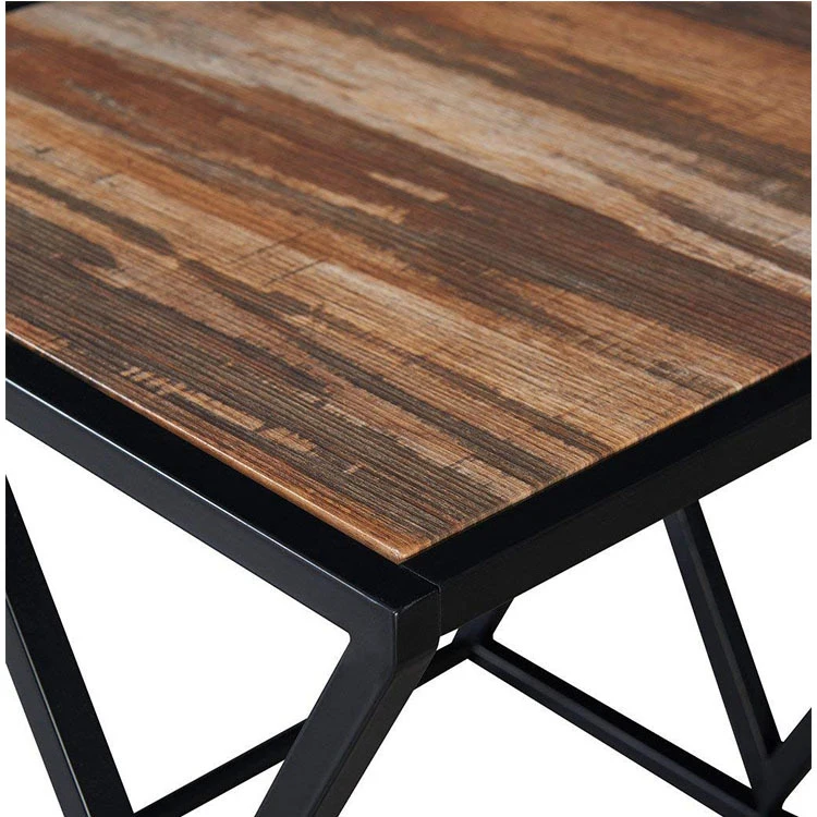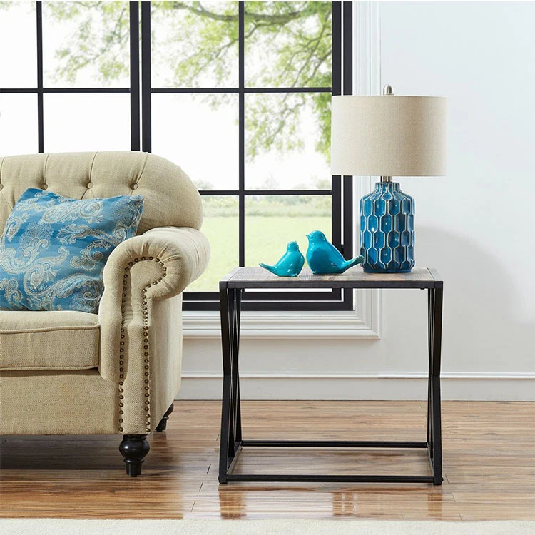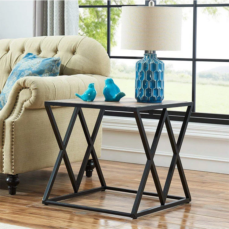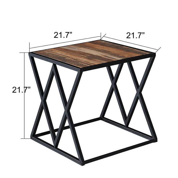 Nordic Design Low Stylish Square Rustic Metal Wooden Side Table, Wholesale Coffee End Table