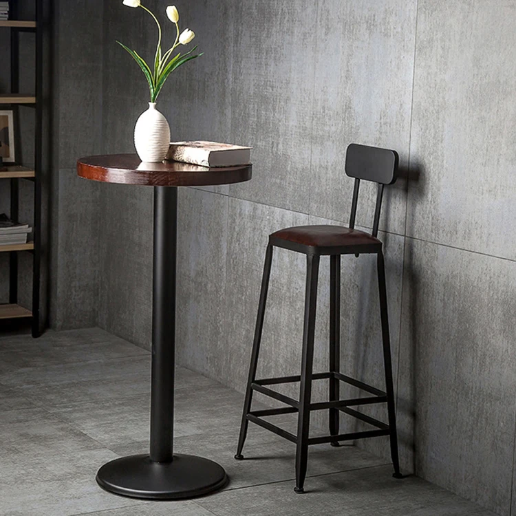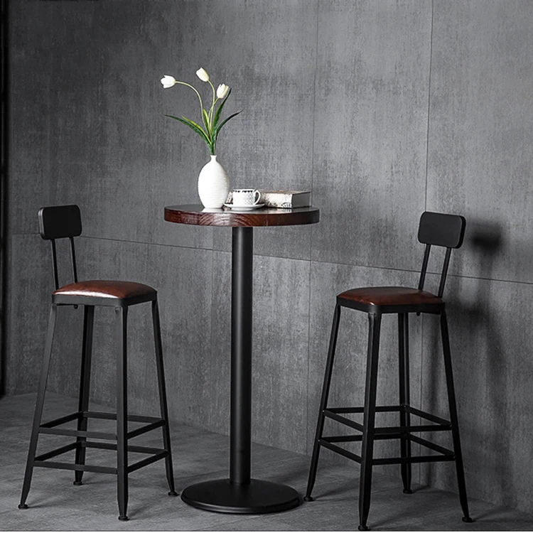 Metal Wooden Side High Modern Dining Stainless Steel Bar Table Set