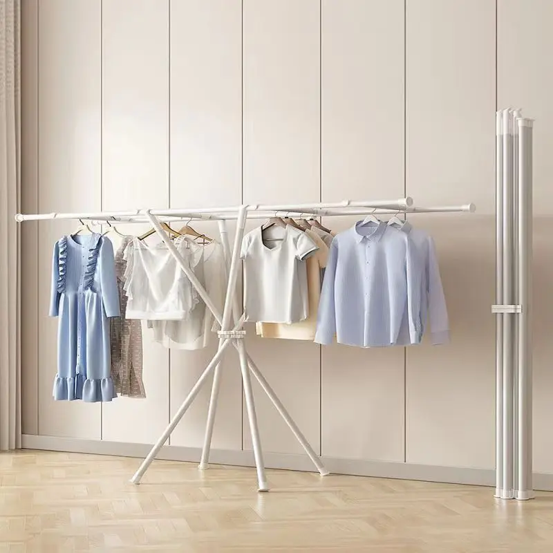 Portable space saving large capacity 2-pole laundry drying rack foldable multi specification drying rack