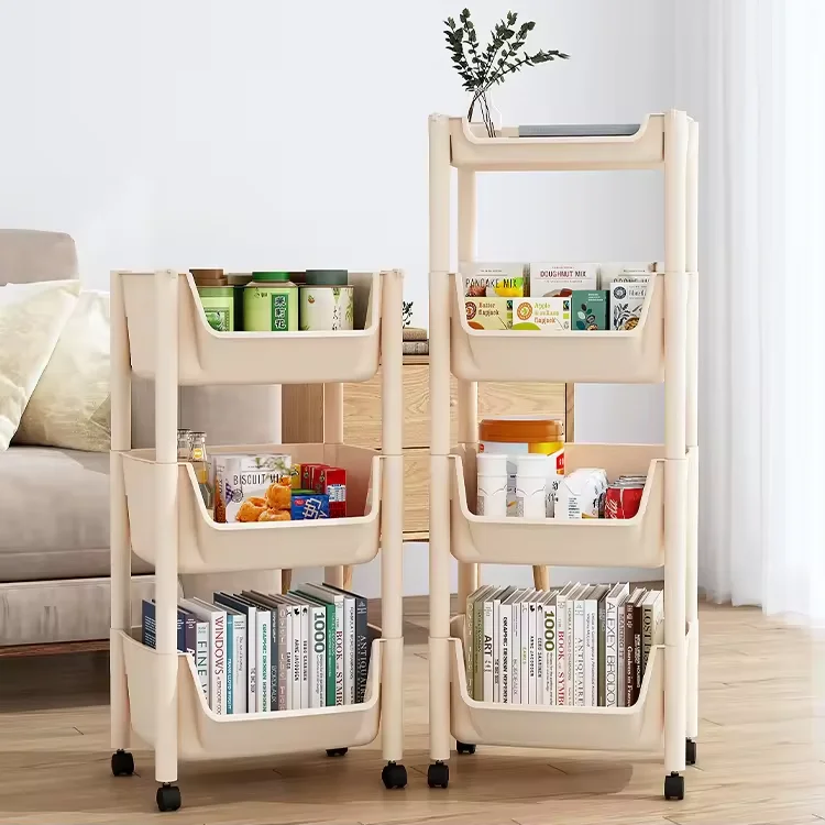 Hot selling multi-layer kitchen organizer plastic PP flooring small cart material rack wheels
