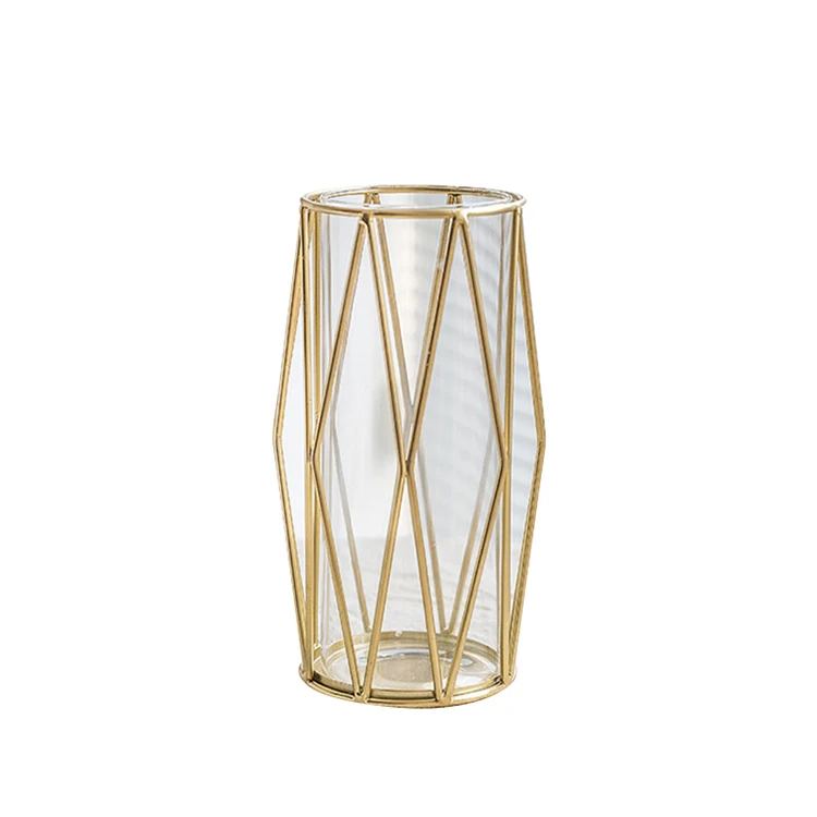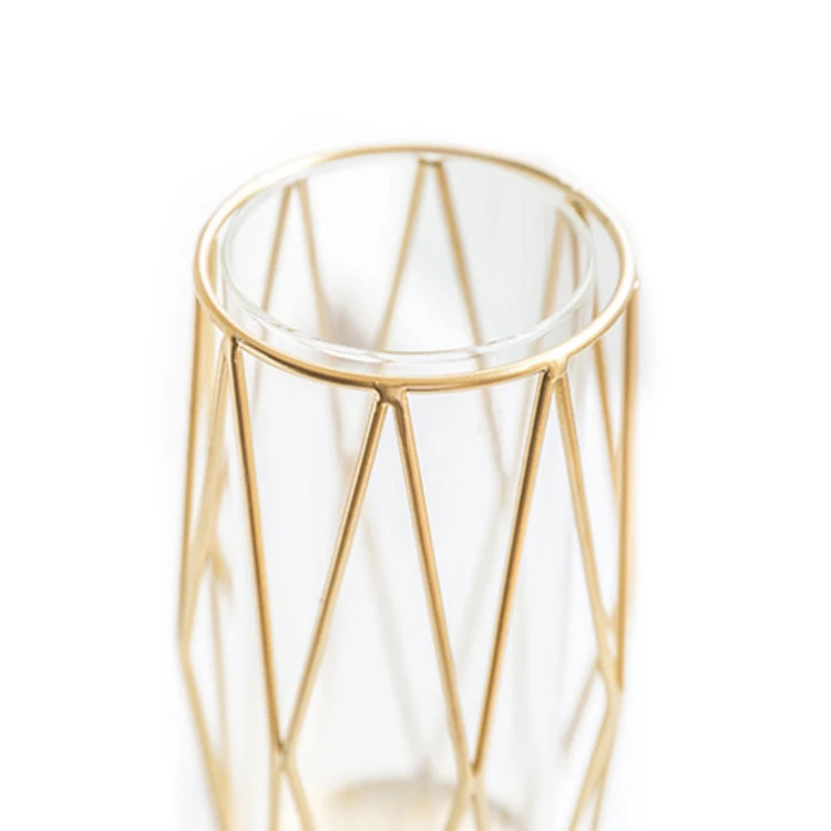 Geometric Gold Luxury Office Ornament Metal Glass Vase Art Home Decoration