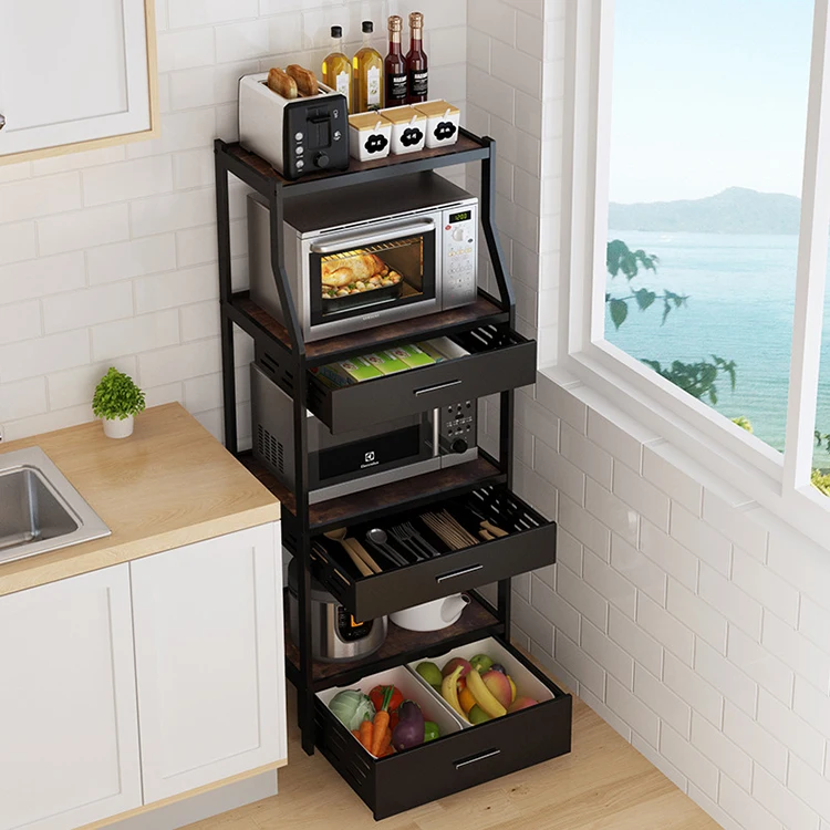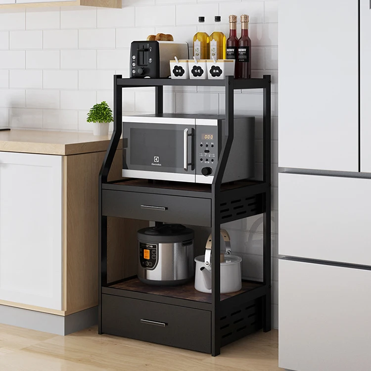 Heavy Duty Multipurpose Floor Stand Kitchen Microwave Drawer Metal Storage Rackr