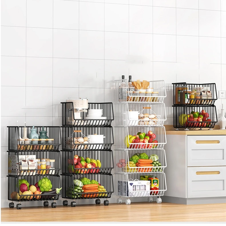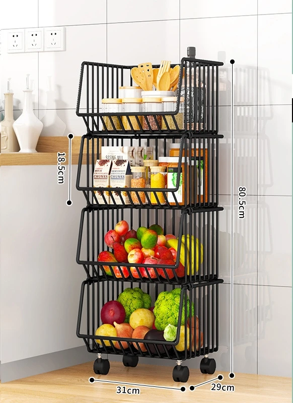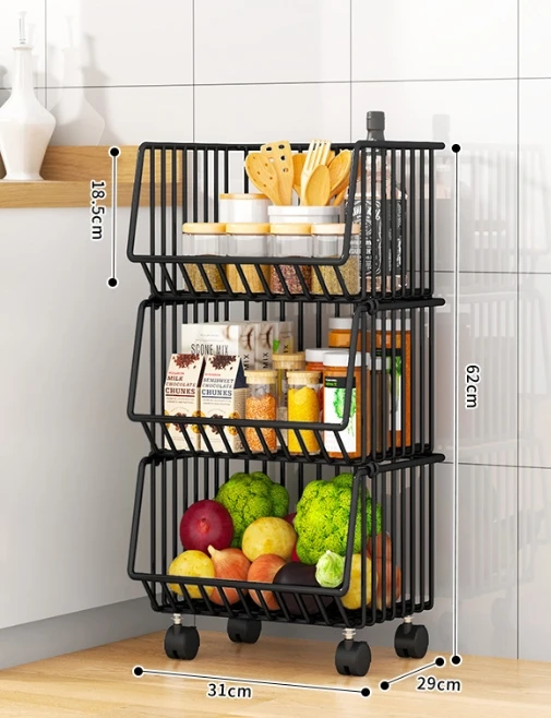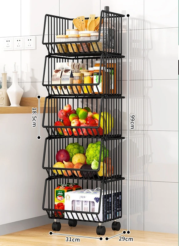 1/2/3/4/5 Tier Multi Rotating Rolling Kitchen Trolley Cart Fruit Vegetable Basket Storage Shelf Rack
