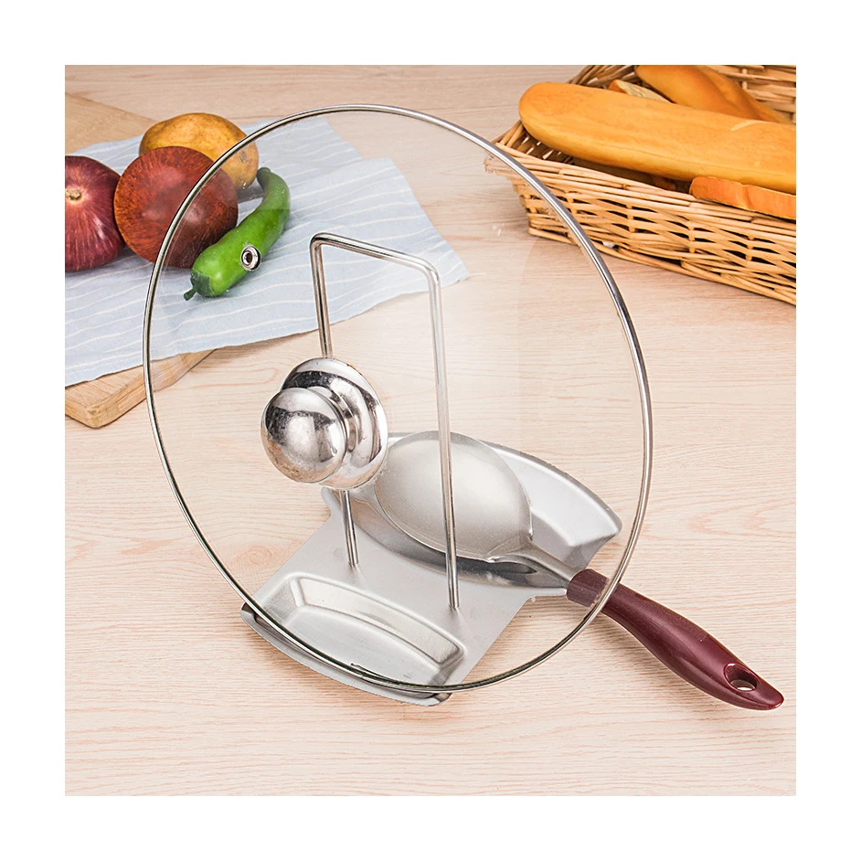 Stainless Steel Kitchen Accessories Metal Pot Lid Shelf and Pan Cover Rack Stand with Sponge Spoon Holder Dish Rack