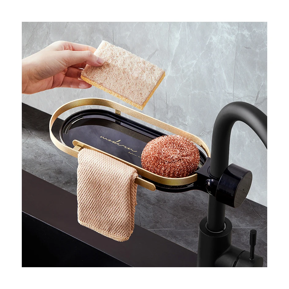 Luxury Kitchen Bathroom Sink Sponge Rag Drain Rack Household Faucet Storage Rack Organizer Holder With Hook