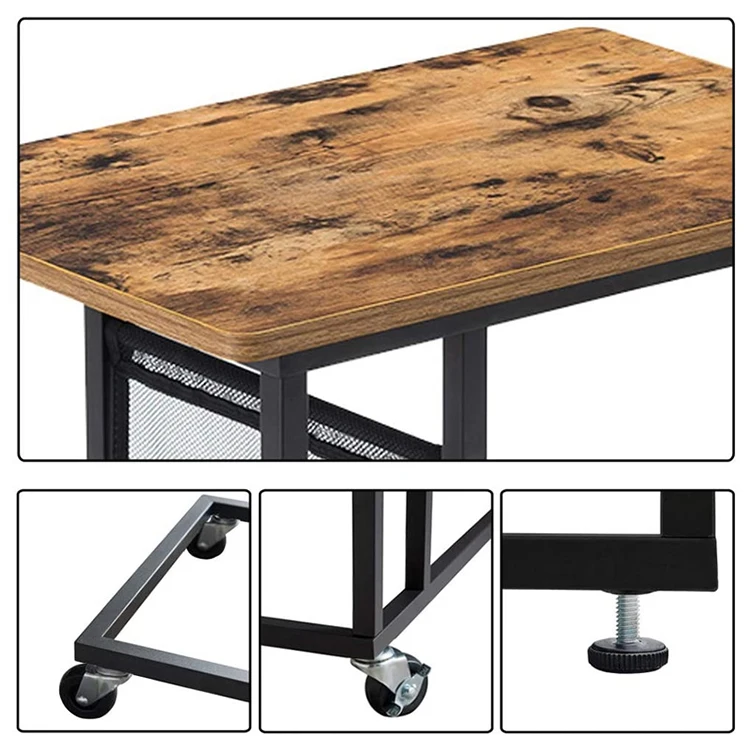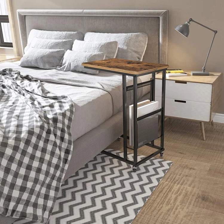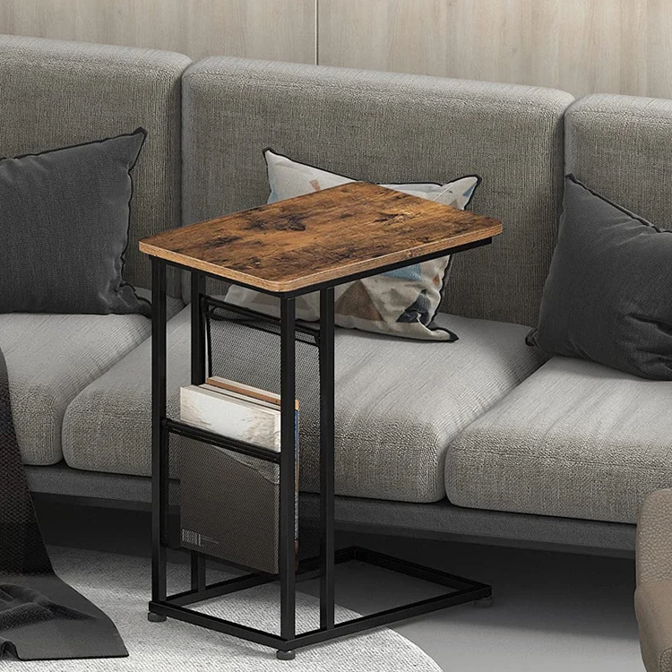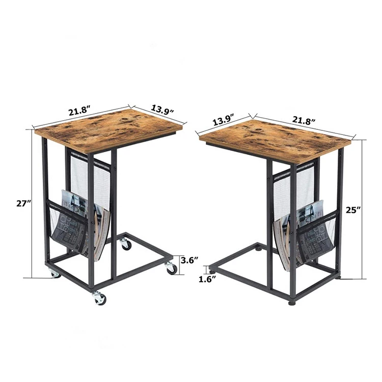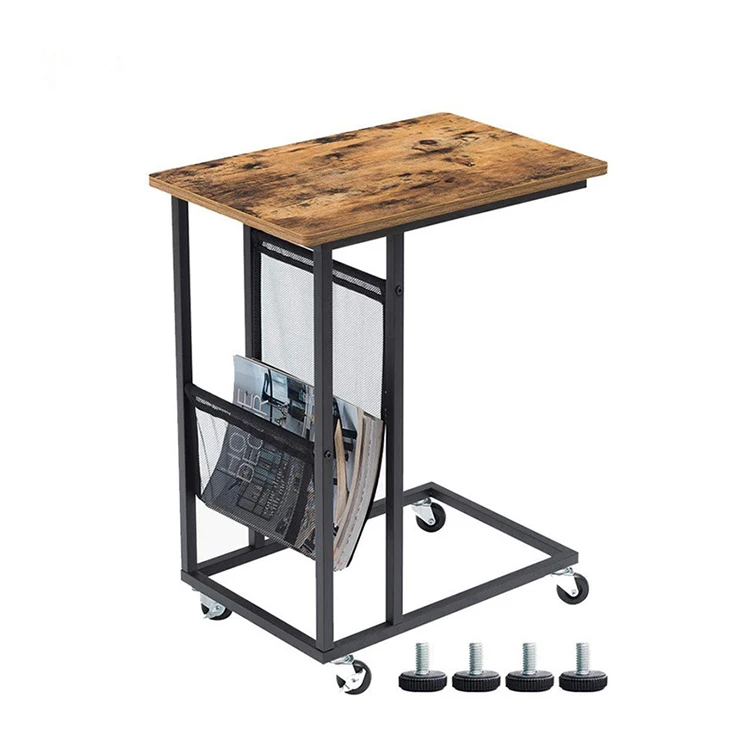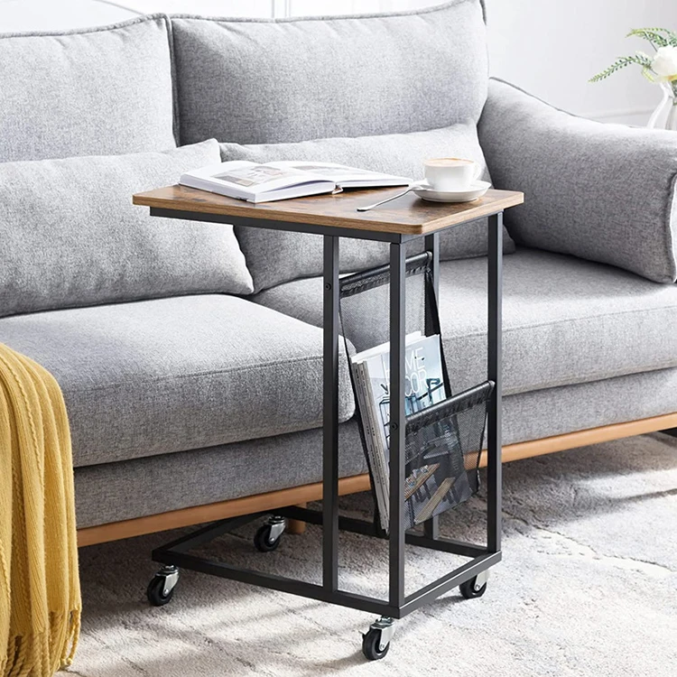 Modern Stylish Mini Sofa Square Luxury Wheel Wooden Metal Leg C Type Side Table, Side Table Across Sofa