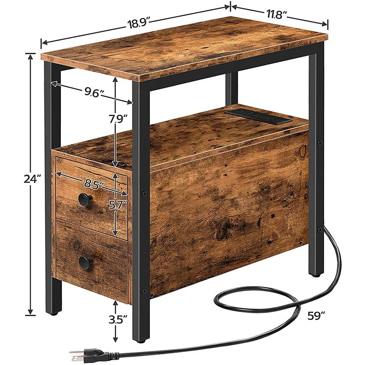 Furtinure Vintage Industrial Smart USB Charger Side Coffee Modern End Table