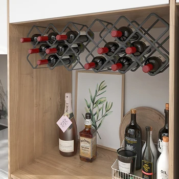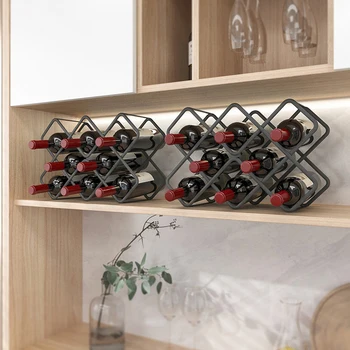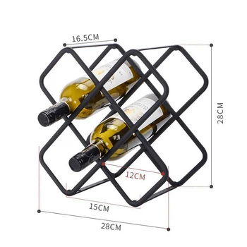 Nordic Cheap Black Modern Countertop Room Metal Wine Rack, Hollow Metal Wine Bottle Holder