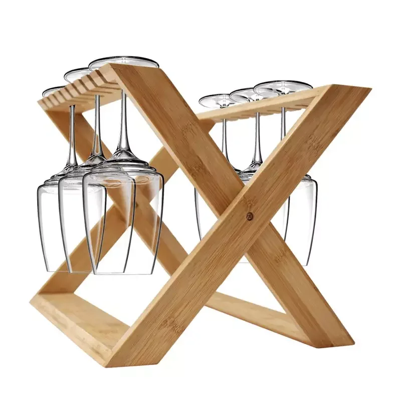 Home Kitchen Bar Bath Bathroom Foldable Folding Wood Wooden Storage Rack Bamboo Hanging Wine Glass Drying Rack Wine Glass Holder