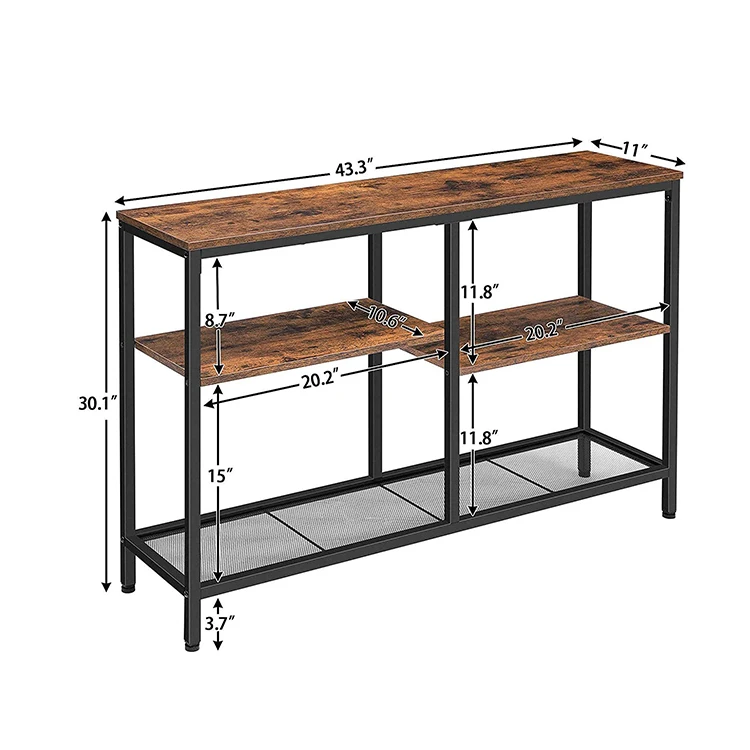 3 tier Living Room Entry Metal Wooden Hallway Console Table