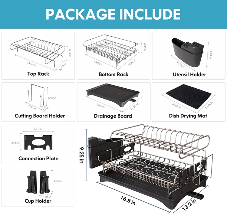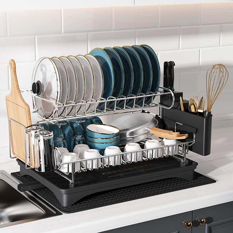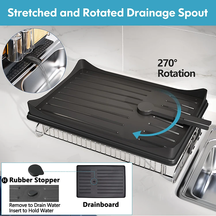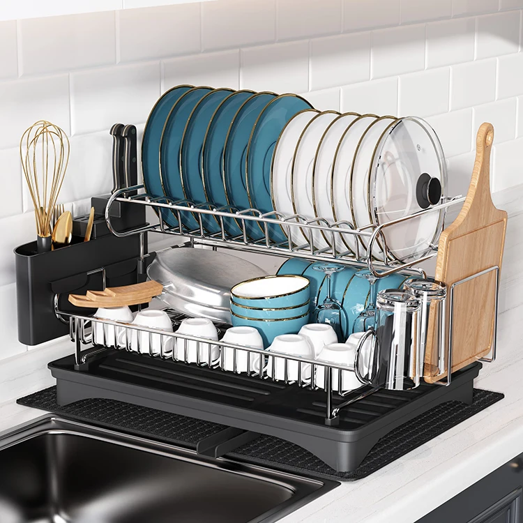 Kitchen Drainer Drying Wash Drain Board Dish Rack With Drip Tray