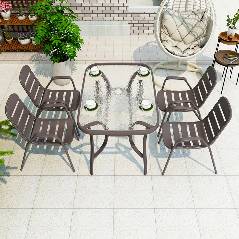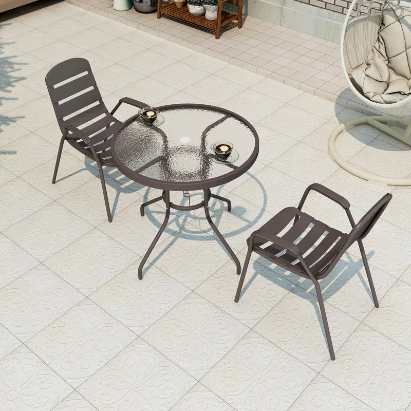 Round Glass Top Metal Frame Garden Round Outdoor Picnic Table For Dining And Poll Side Balcony