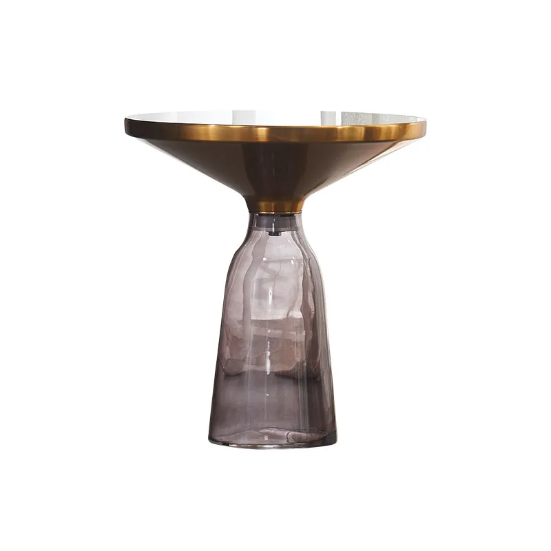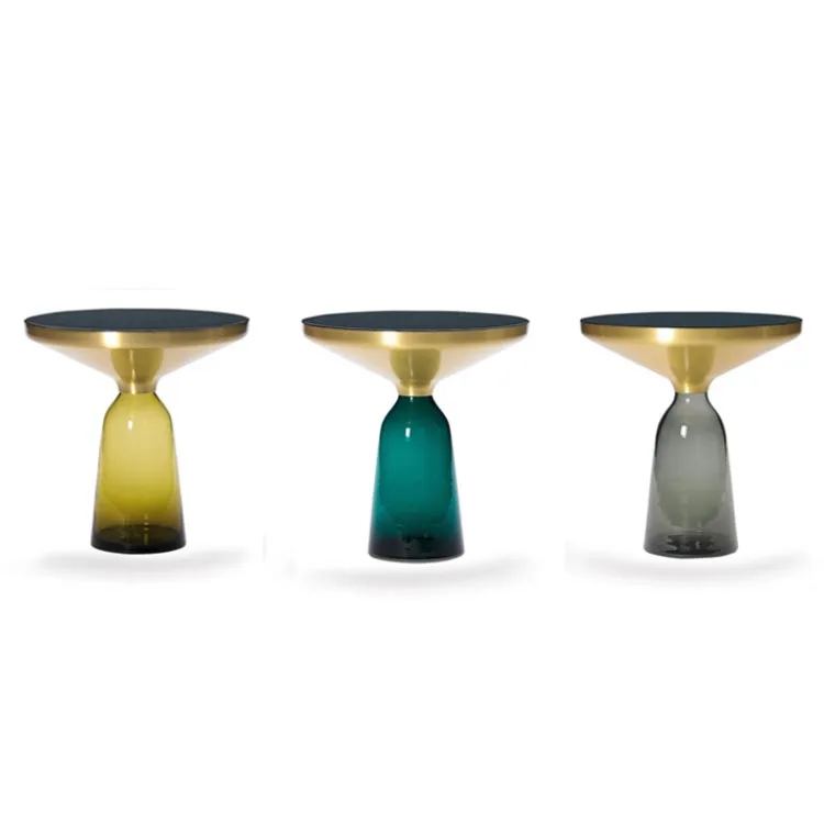 Wholesale Modern Designer Furniture Nordic Style Hotel Gold Round Glass Coffee Table Round Bell Side Home Decoration