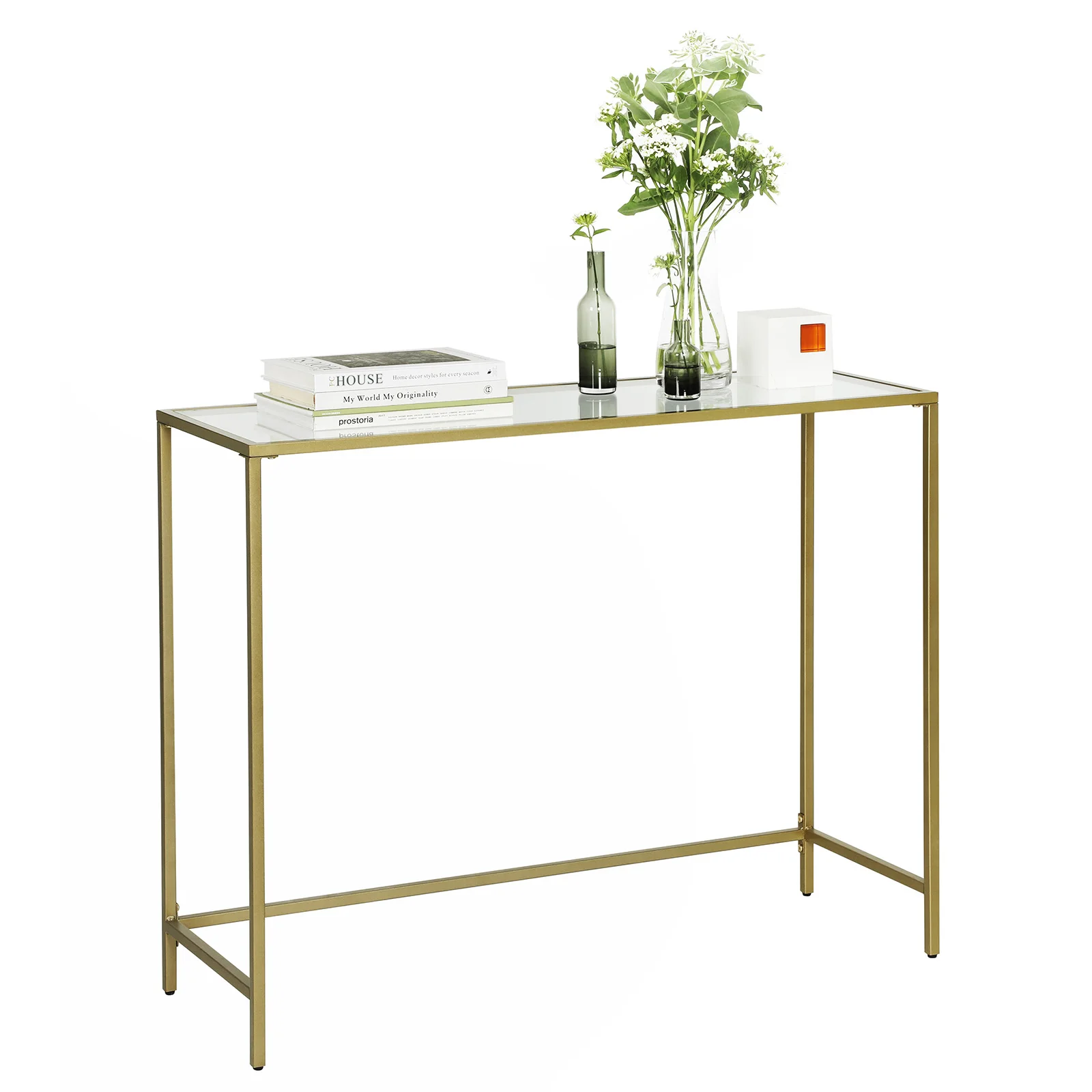 Modern Metal Frame Glass Desktop Adjustable Feet Sofa Side Hallway Entryway Console Table