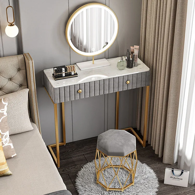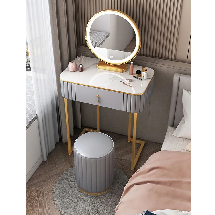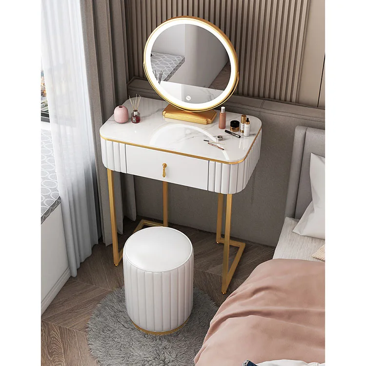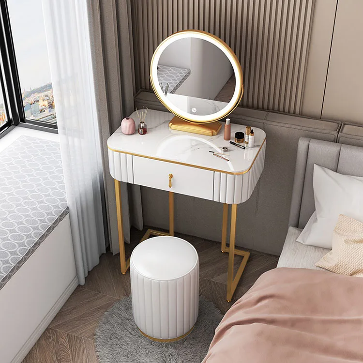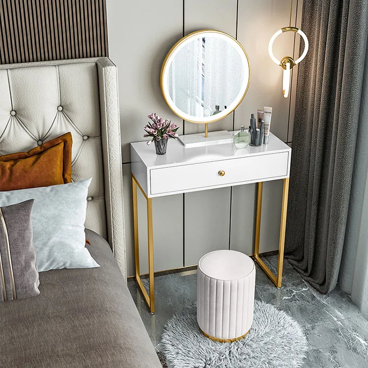 Luxury European Style Professional Makeup Princess White Dressing Table, Light Mirror Makeup Vanity