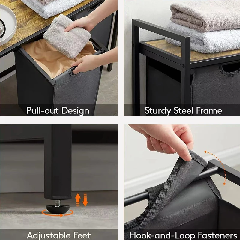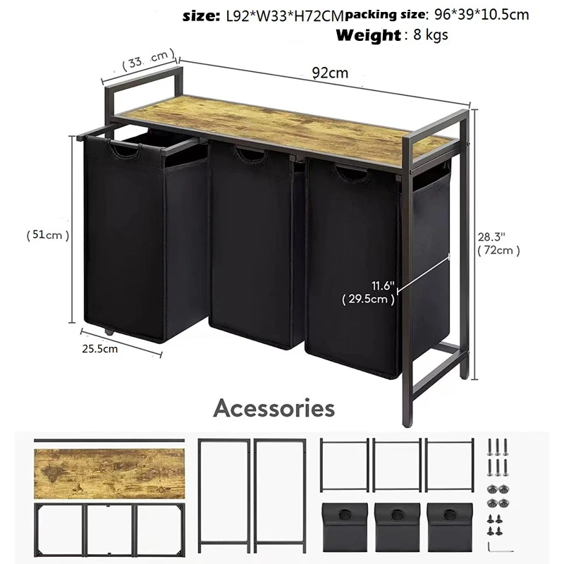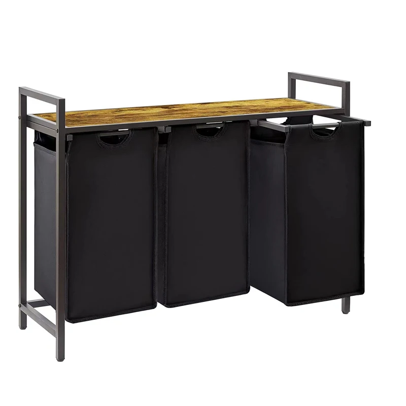 3 Section Pull Out Laundry Clothes Hamper With Large Top Shelf And 3 Removable Bags And Handles Laundry For Laundry Room