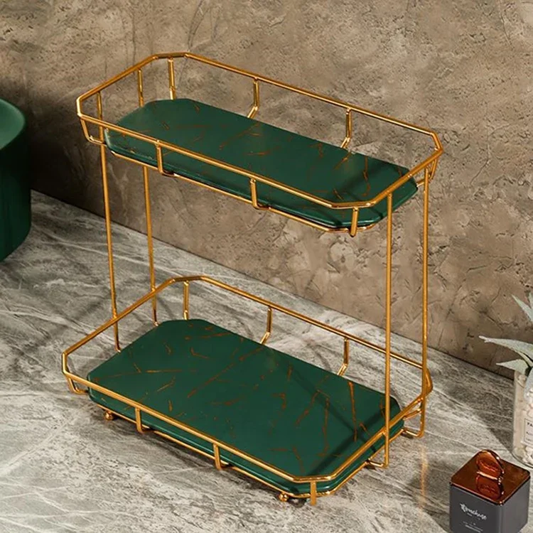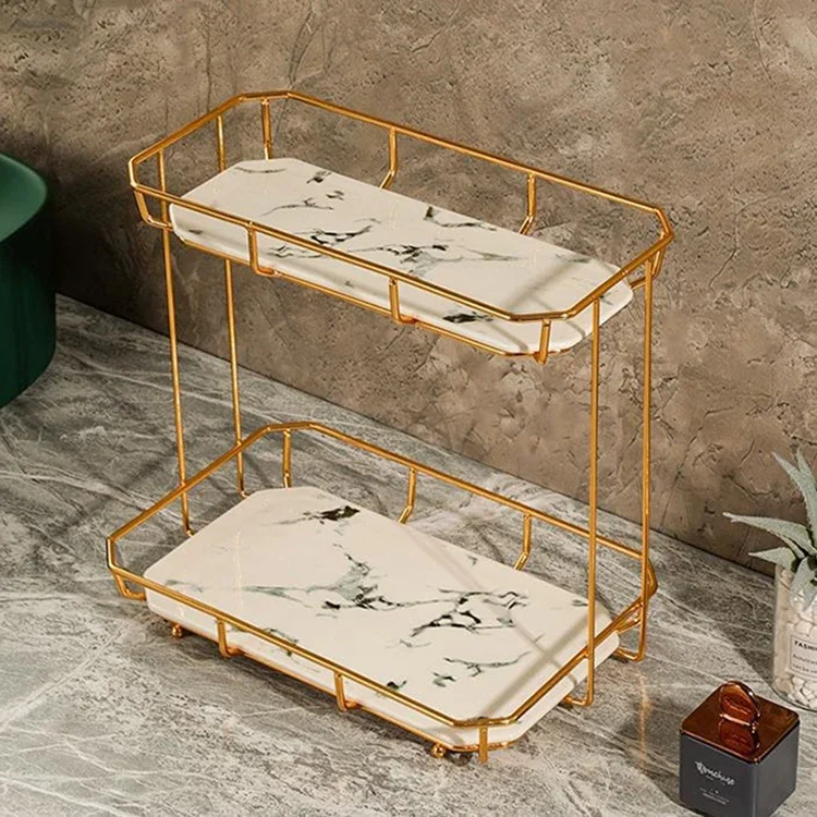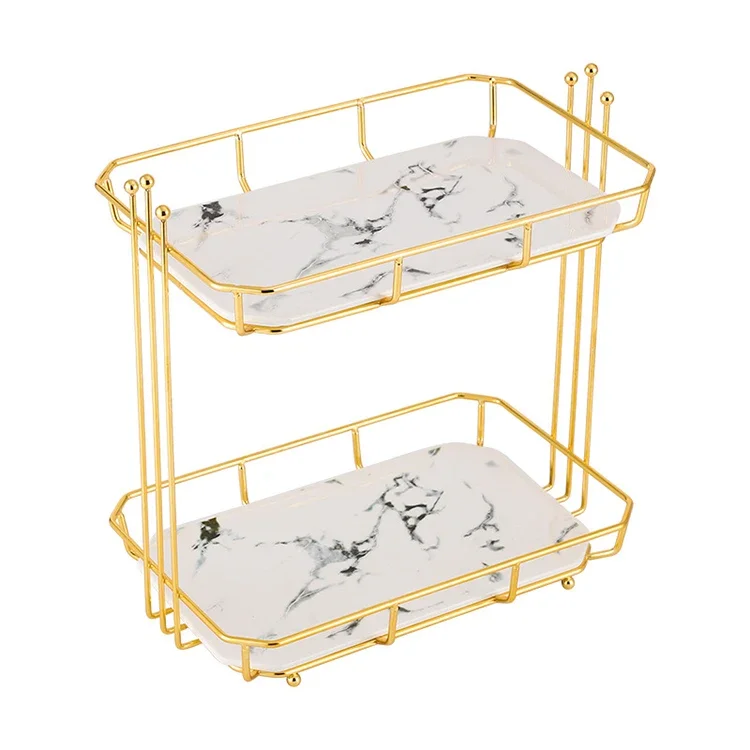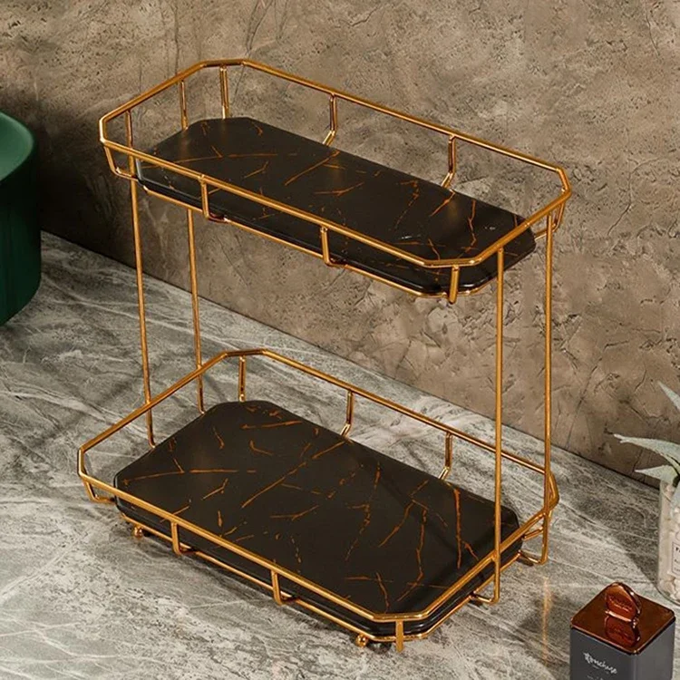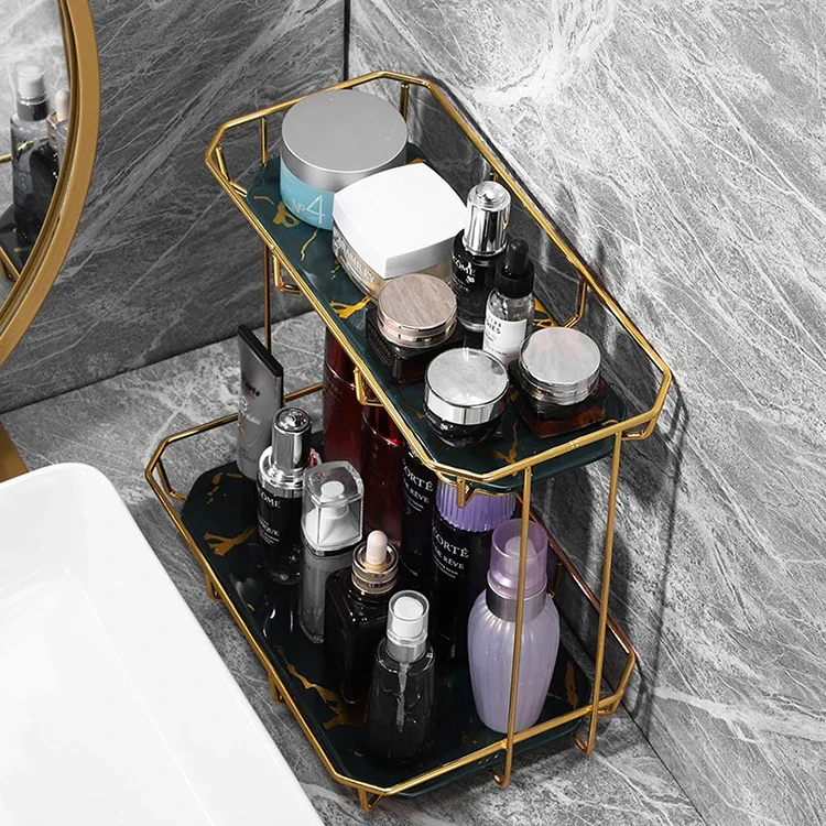 304 Stainless Steel 2 Tier Makeup Storage Double Marble Bathroom Shelf