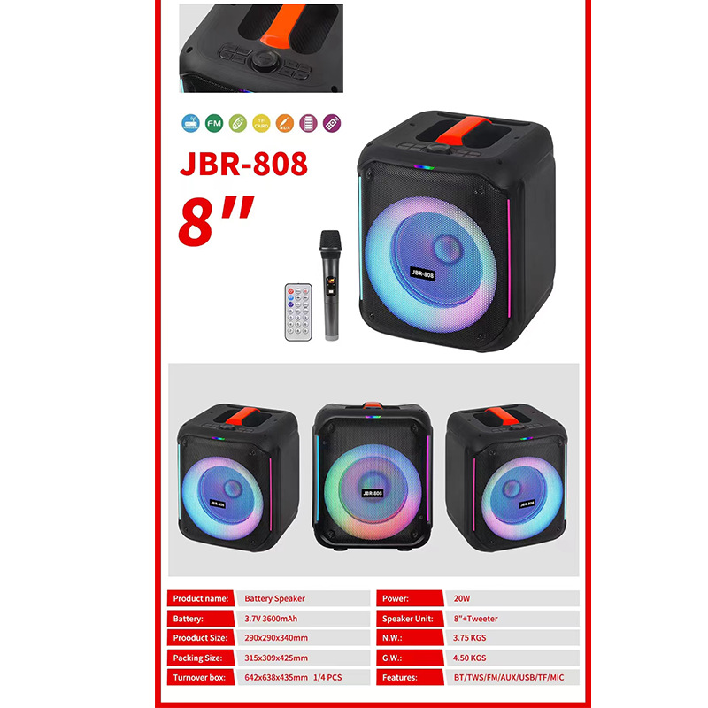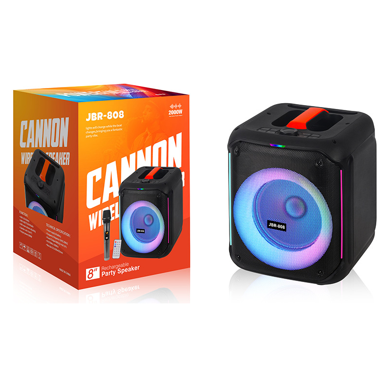 8-inch bluetooth audio 3600 large battery belt 1 wireless microphone with colorful circle light outdoor party audio
