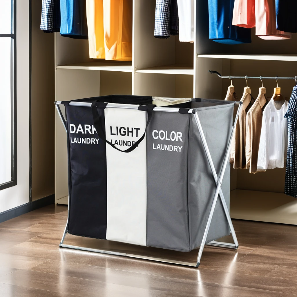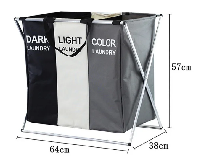 * 3 sections large capacity blanket laundry baskets - Divided into 3 sections laundry hamper,so you can sort your dark, color from light as you drop clothing into the bags. Each laundry bag can hold up to 2 standard size loads of laundry.