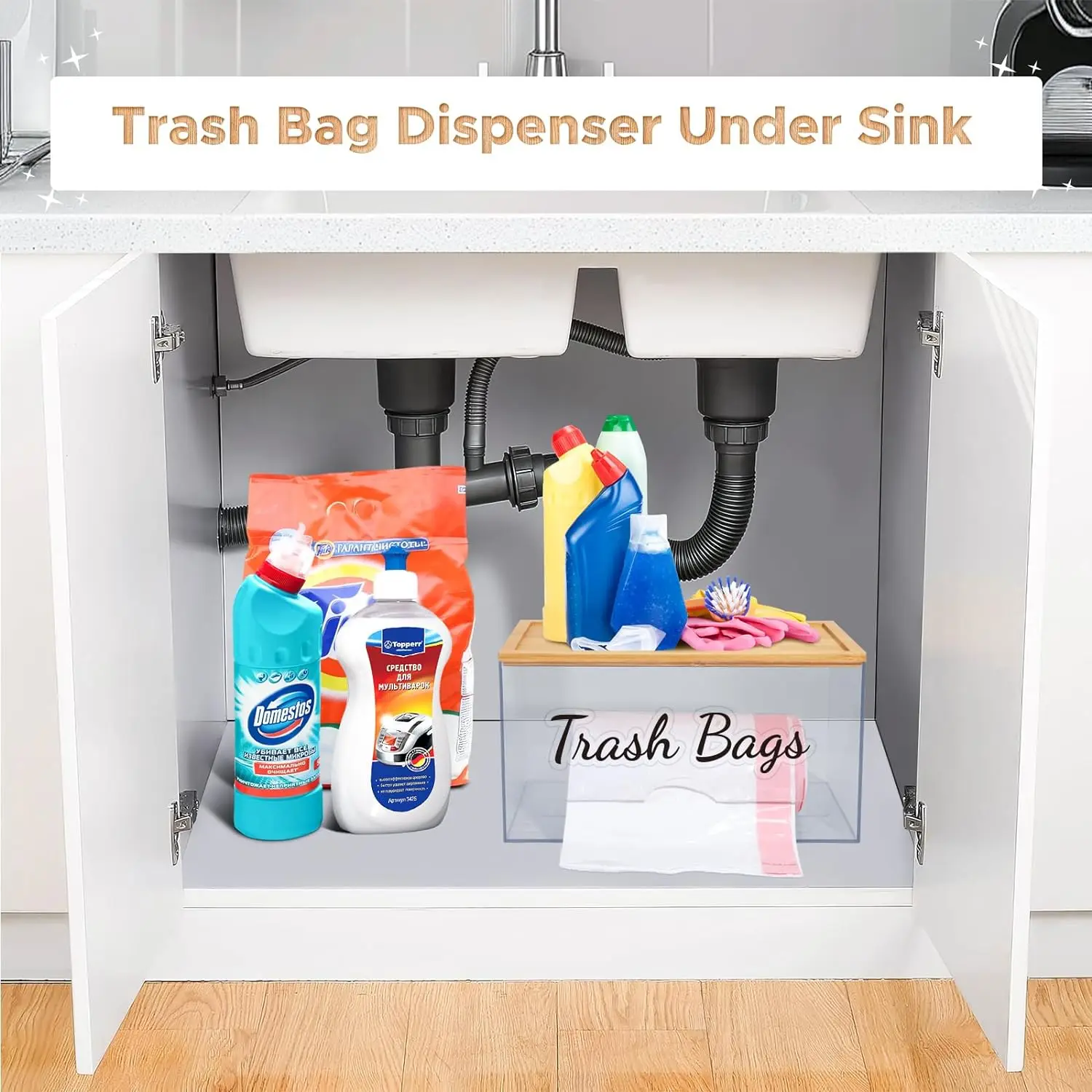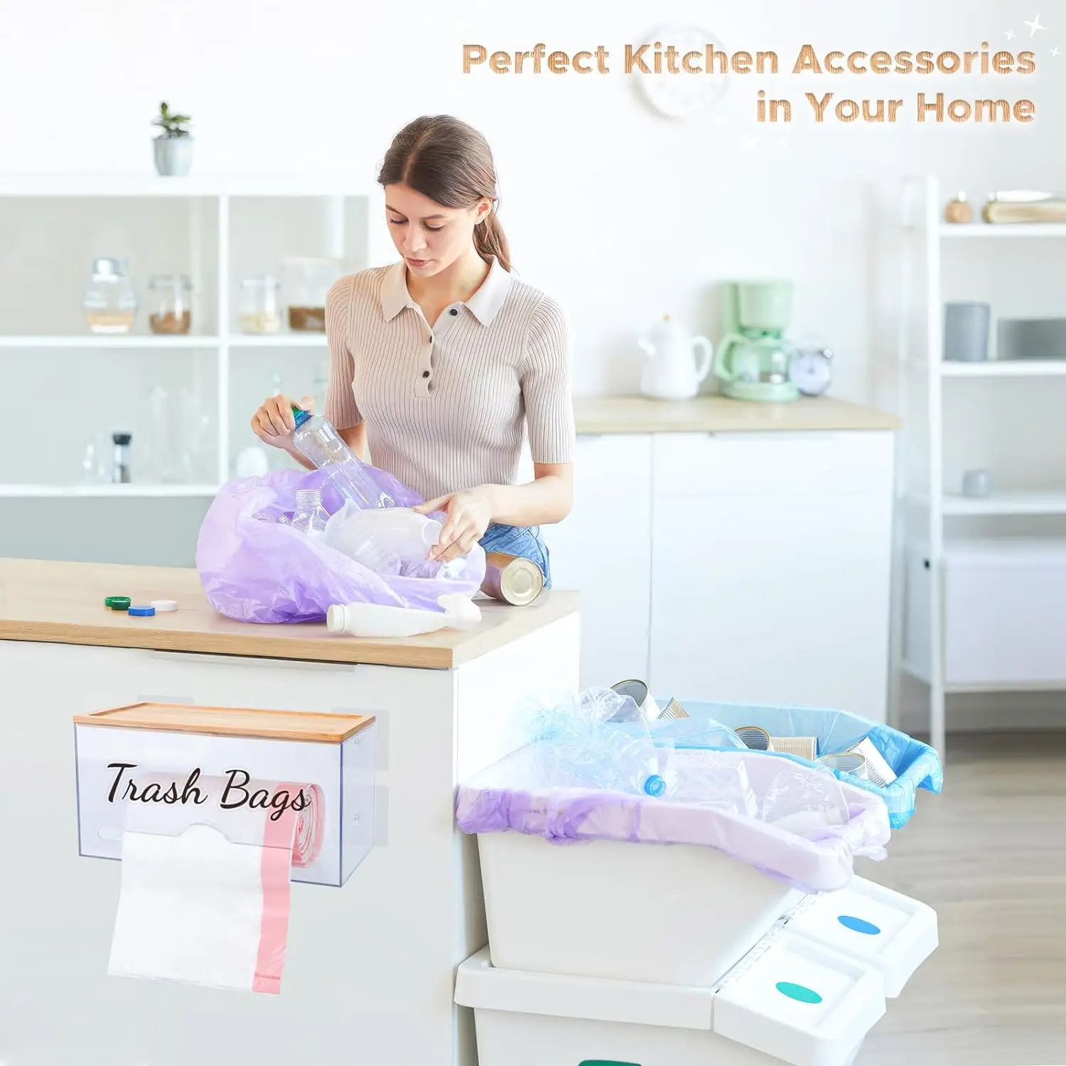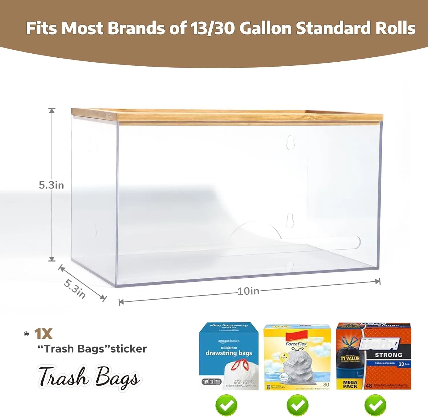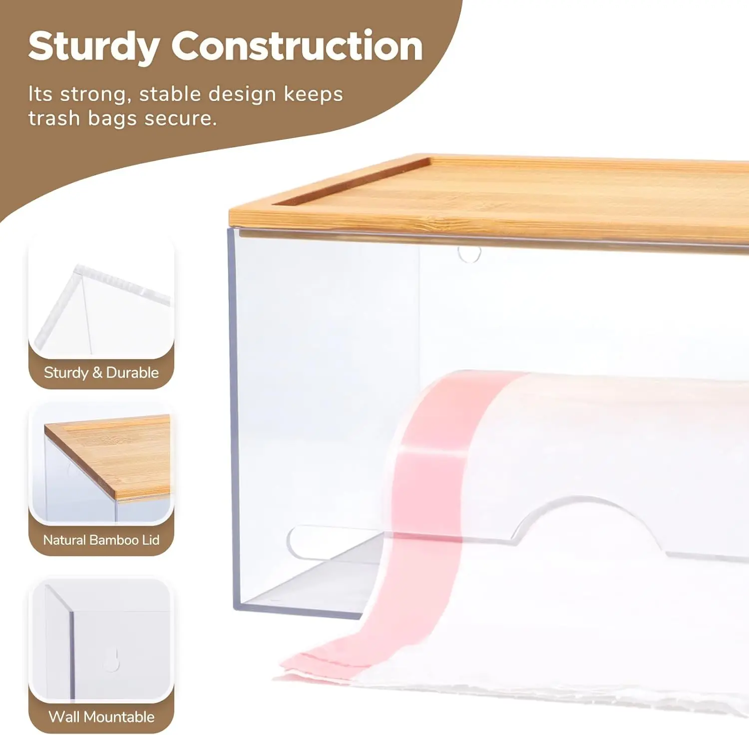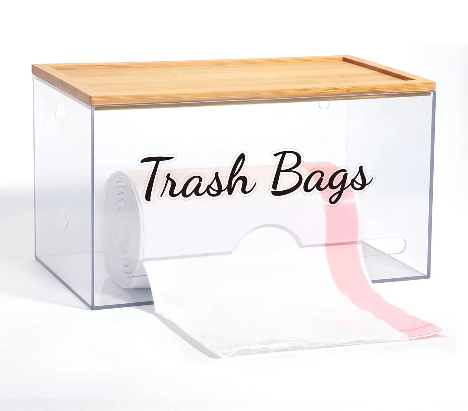 Kitchen Acrylic Trash Bag Holder Dispenser Organizer With Bamboo Lid garbage bag dispenser