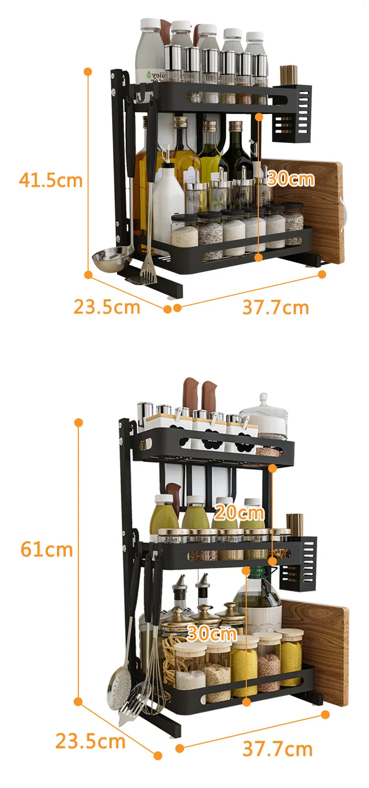 Product name | 201 Stainless Steel With Black Coating Standing Kitchen Bottle Jars Organizer Rack 2 layer 3 Tier Spice Rack | |