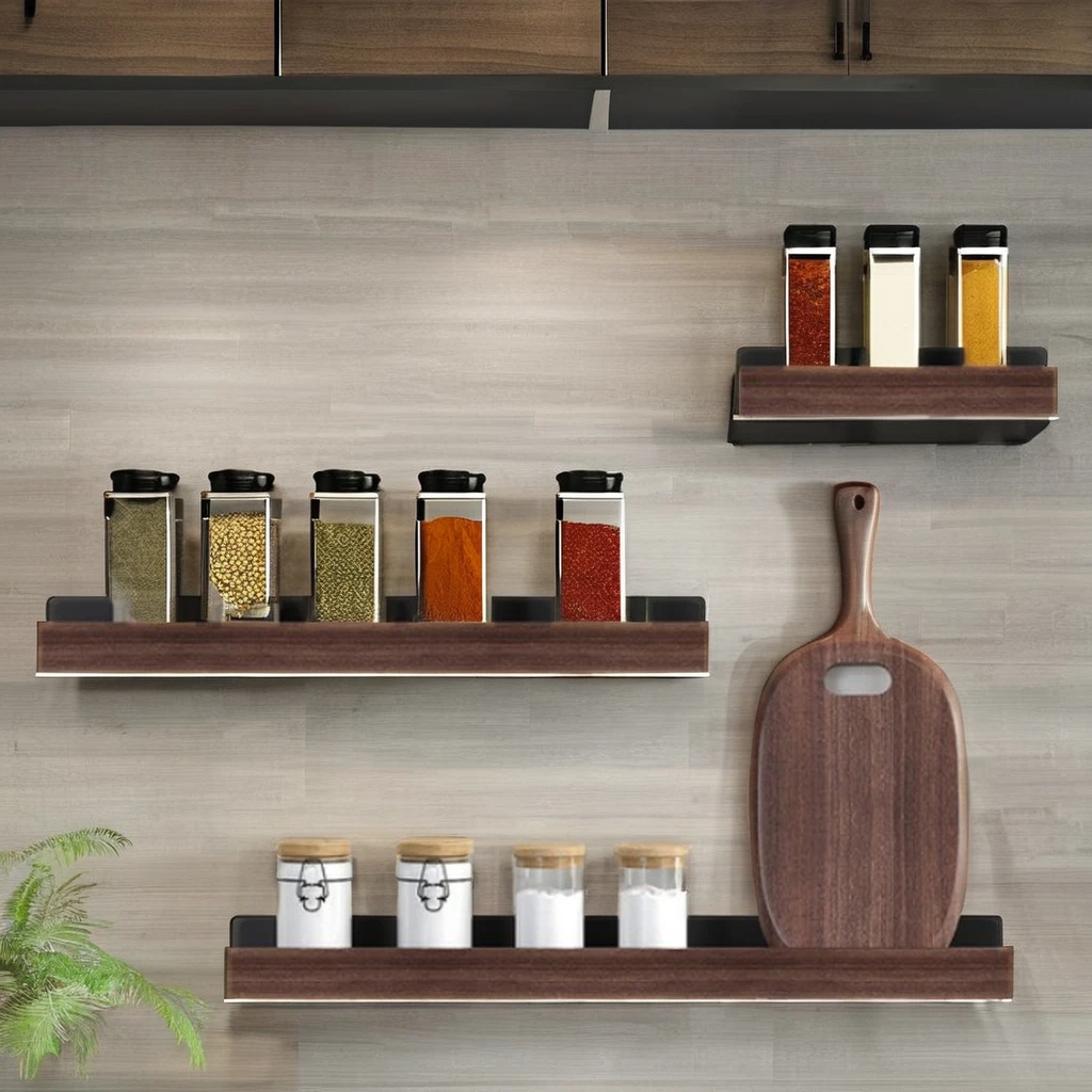 Solid wood single layer storage rack punch-free spice storage rack with drying function suitable for kitchen stove spice rack
