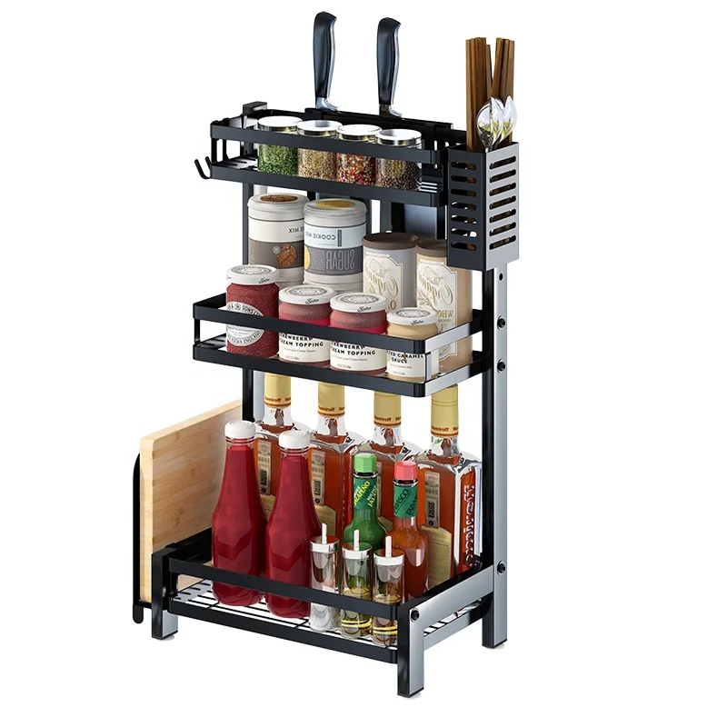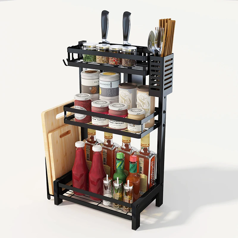 Set factory direct stainless steel black kitchen desktop three-layer seasoning rack