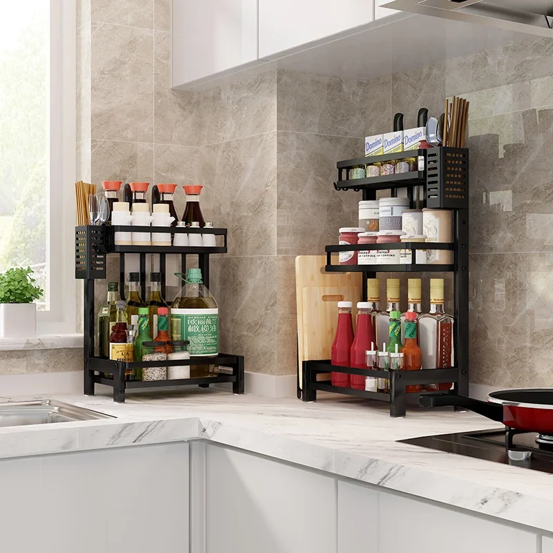 3:The kitchen desktop storage is a good helper. In addition, the bracket extends and matches the knife rack, vegetable shelf, tableware cage, multi-purpose one, more convenient for multiple functions! Love home and storage