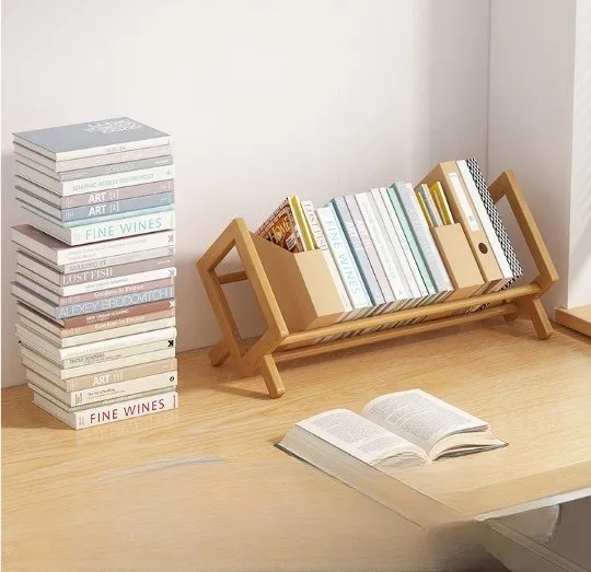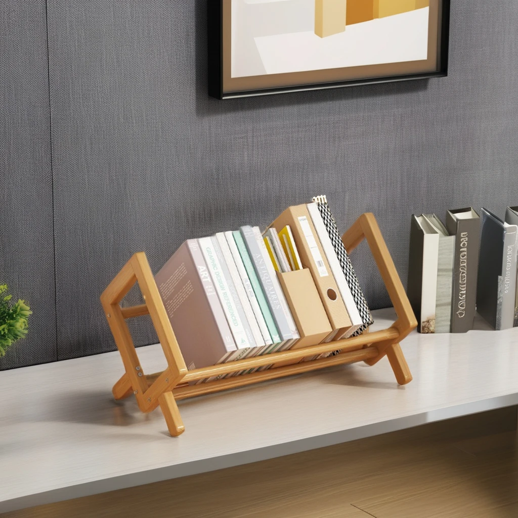 Creative Bamboo CD Rack Folding Disc Table and Plate Storage Display for Desktop Children's Bookshelf and File Organization