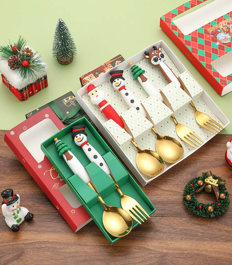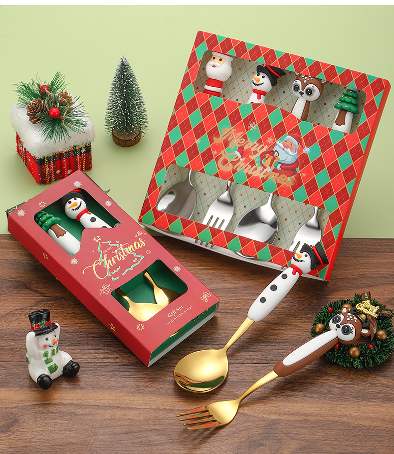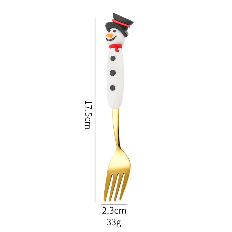 snowman spoon/deer fork 2-piece set b [gold]