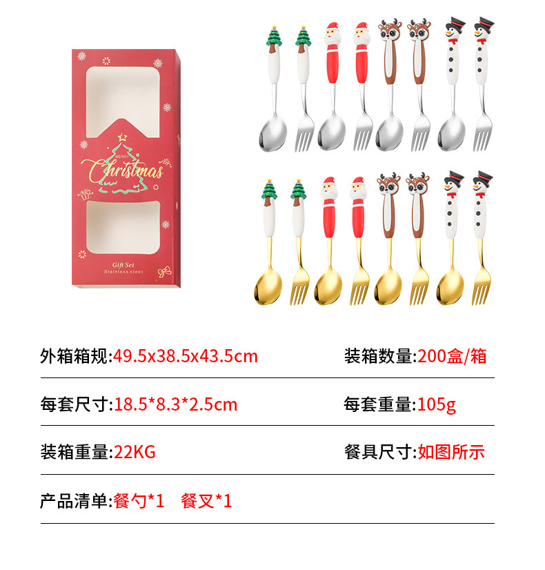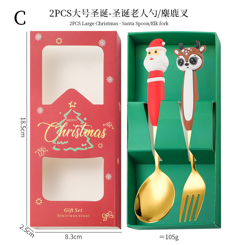 santa claus spoon/deer fork 2-piece set c [gold]